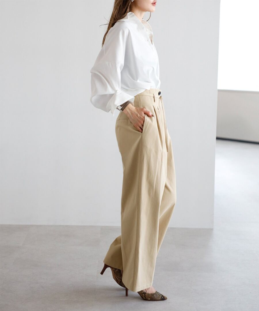 ツイル素材ならではの程よいハリと落ち感で、きれいなシルエットを演出します。
