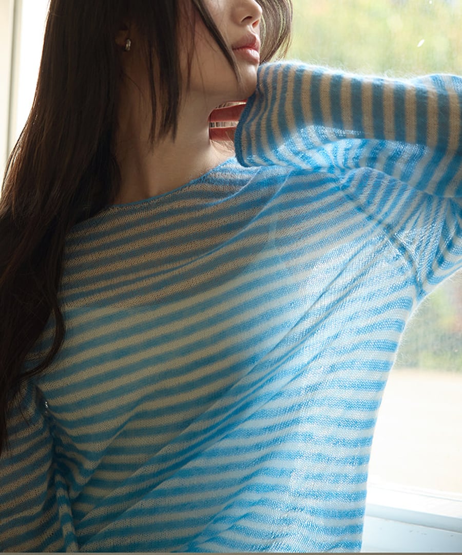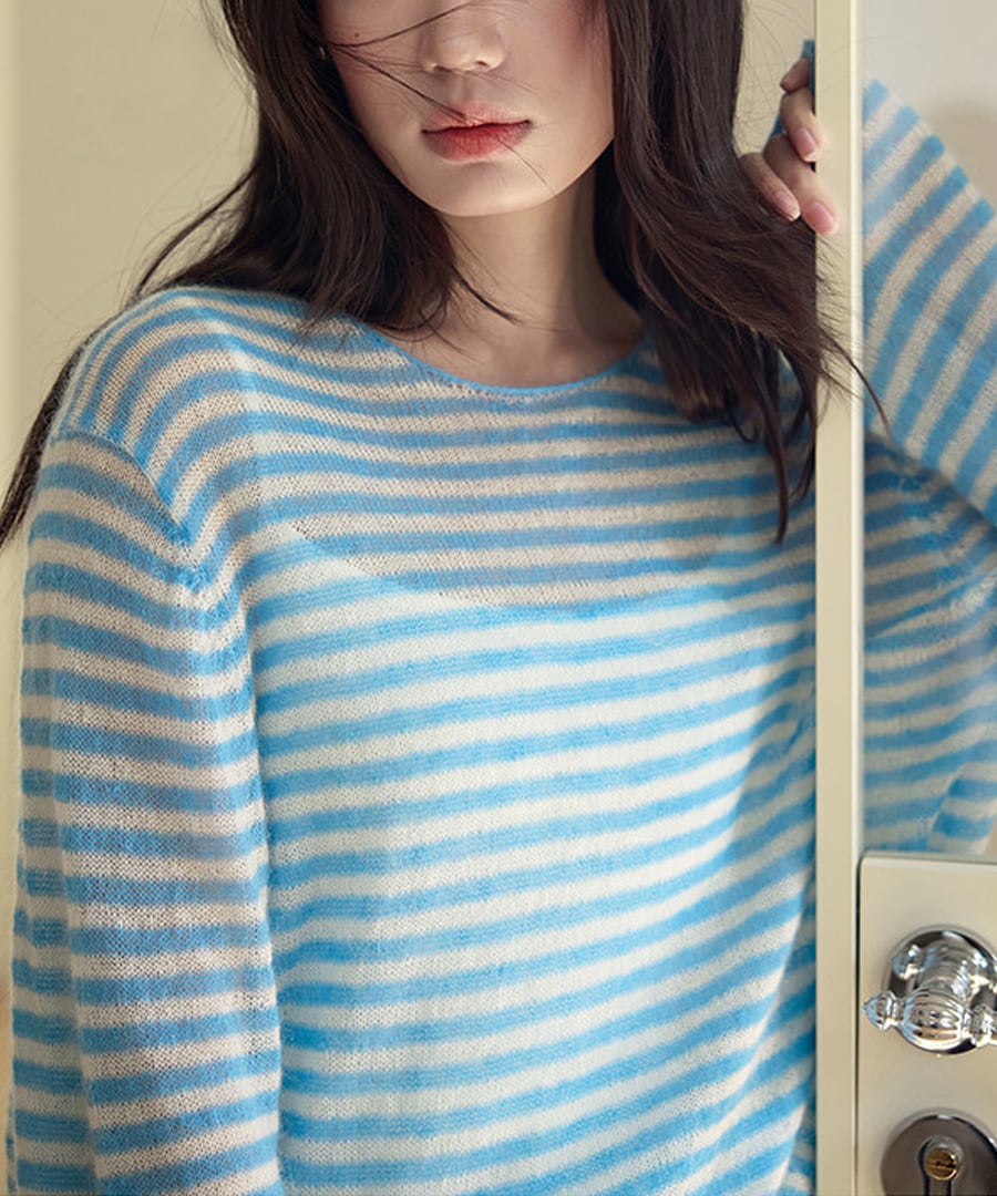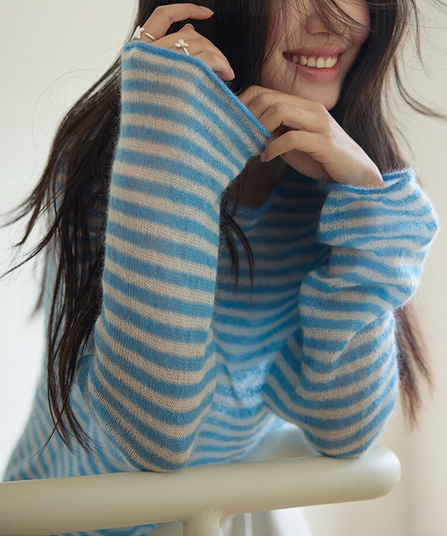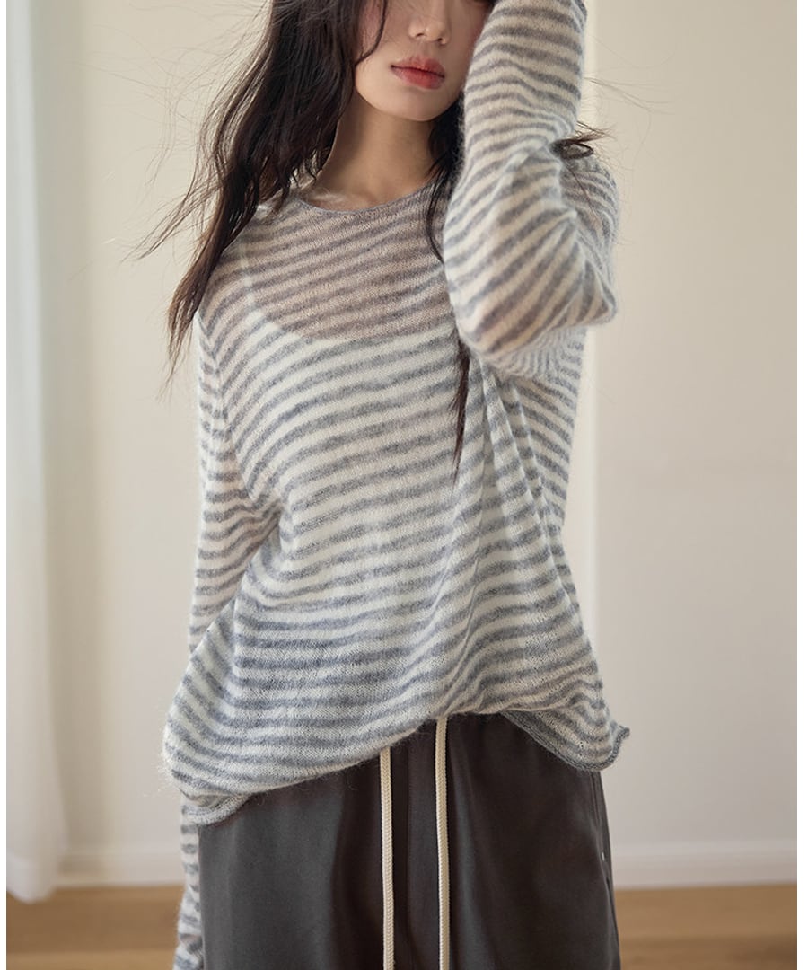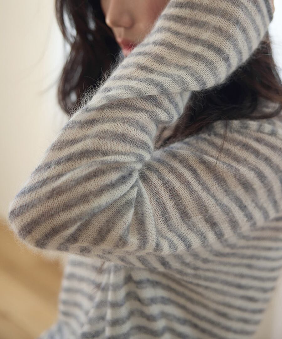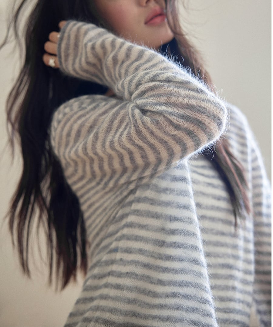 ストライプがシックな印象を与える、リラックスフィットのモヘア混セーター。