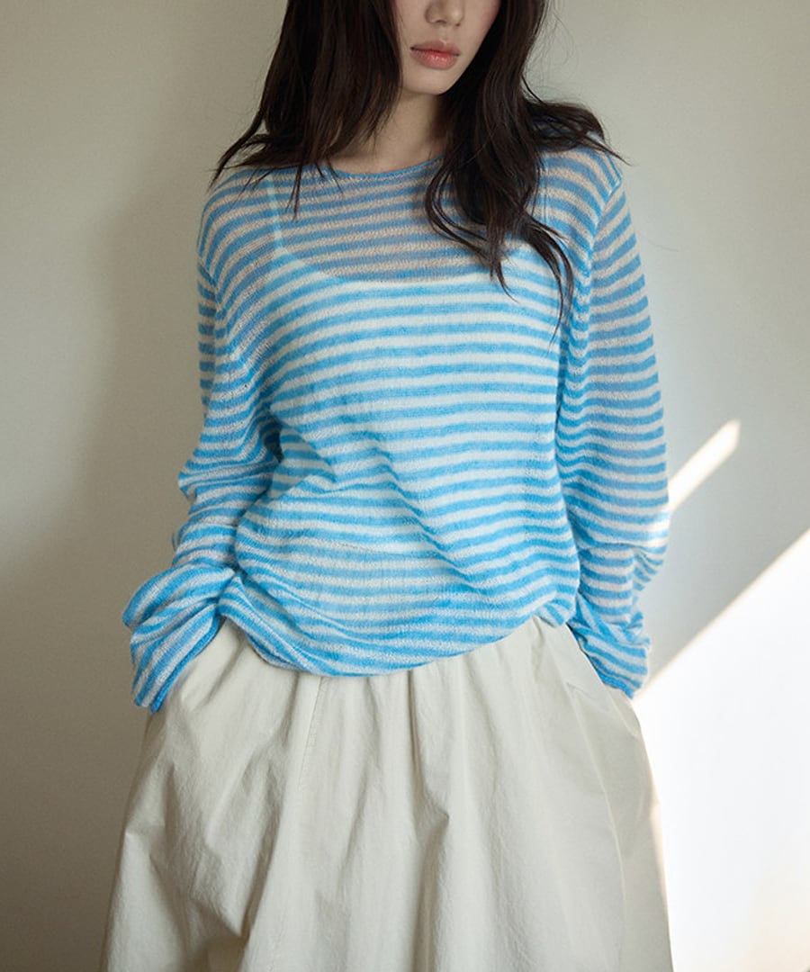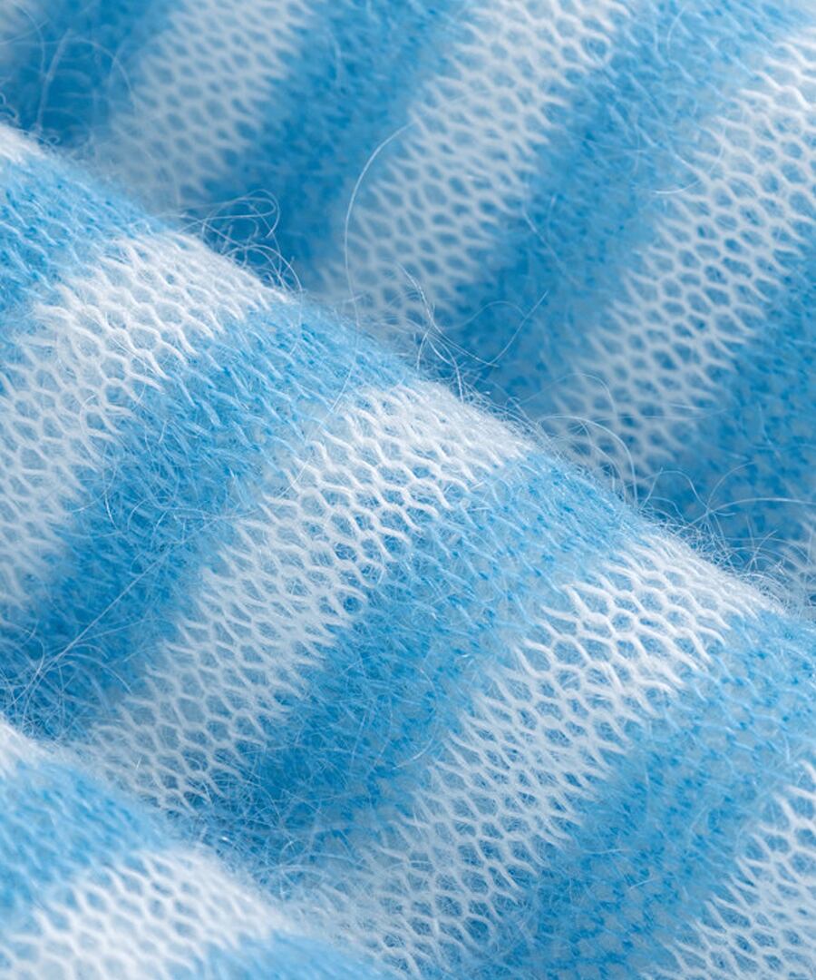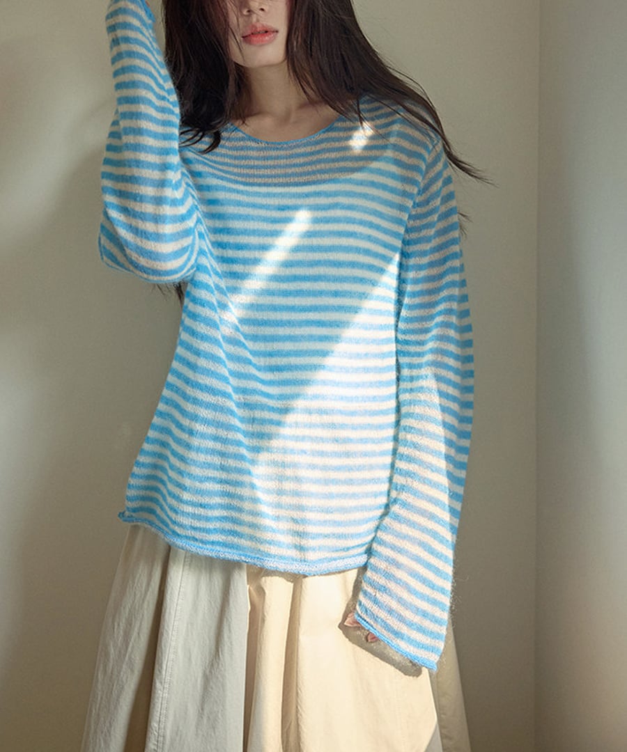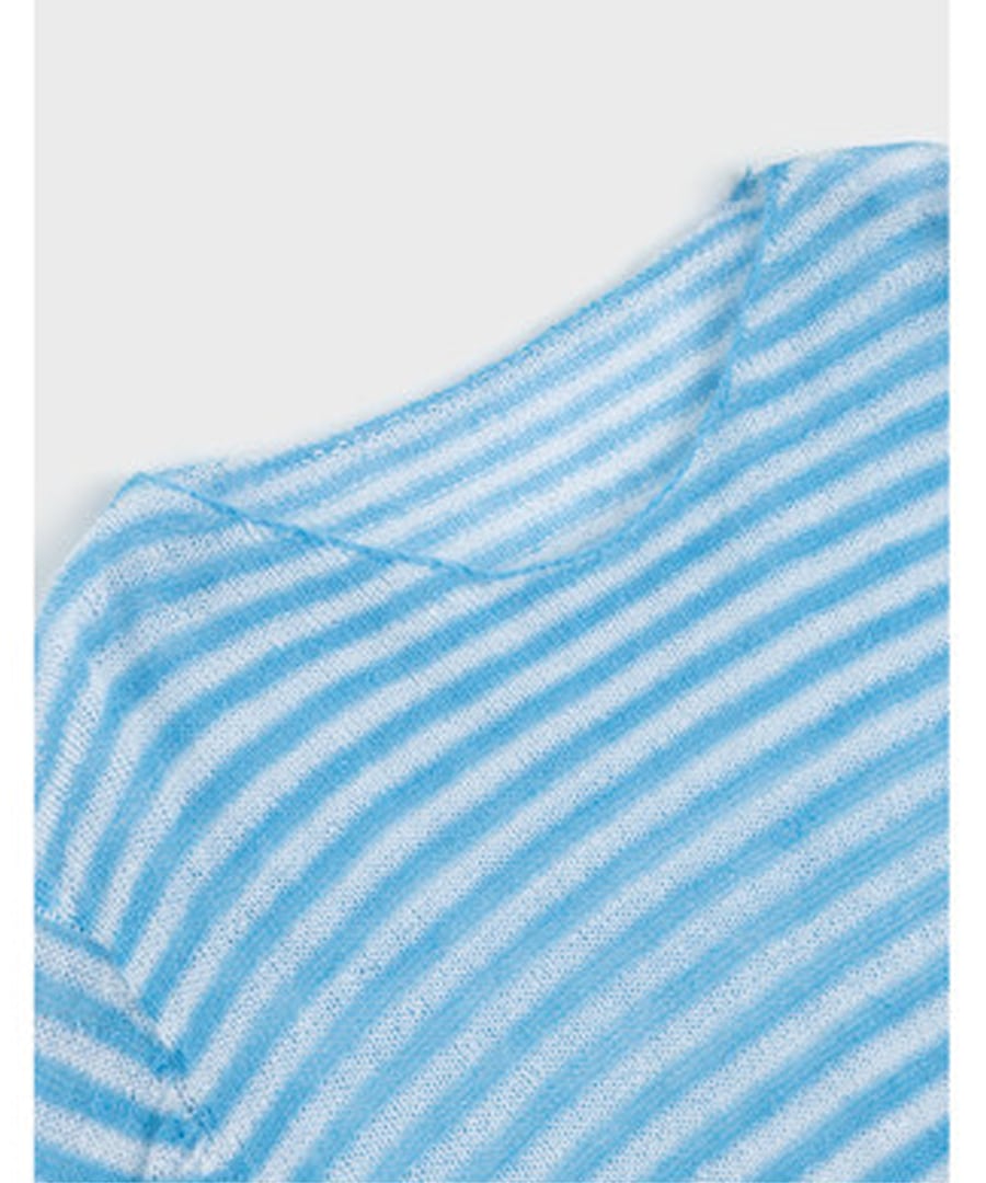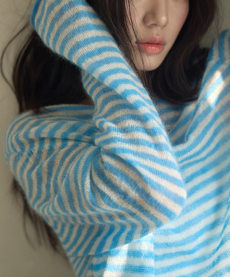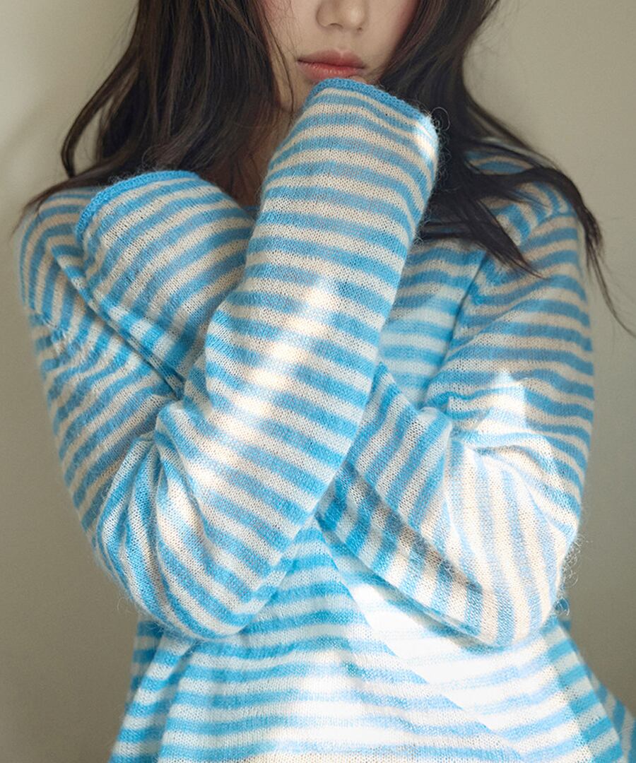 ストライプがシックな印象を与える、リラックスフィットのモヘア混セーター。