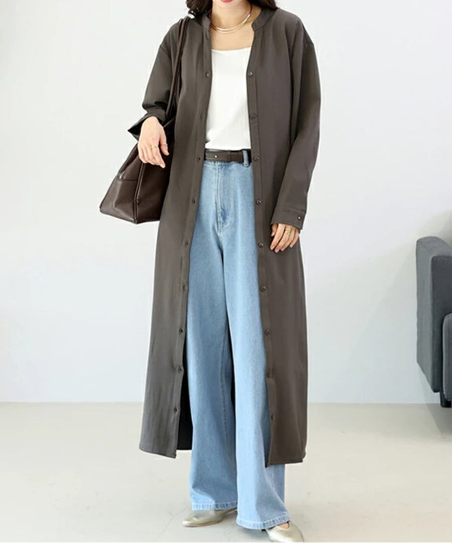 長袖シャツワンピースとしてもご利用いただける多機能アイテム。