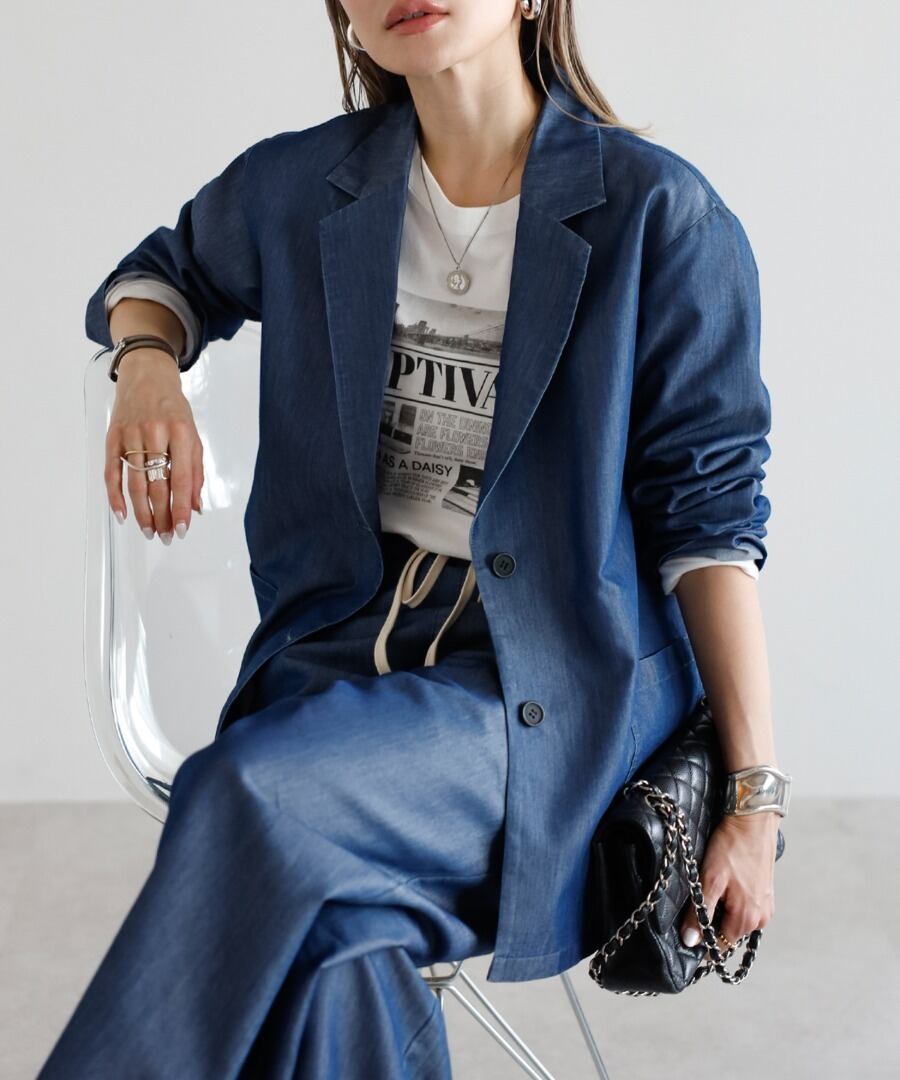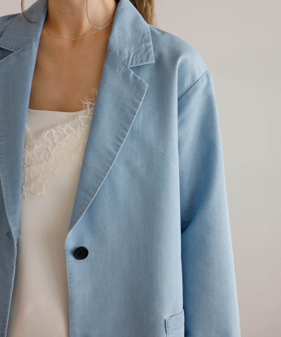 涼やかに映えるシアー素材が魅力のライトデニムジャケット