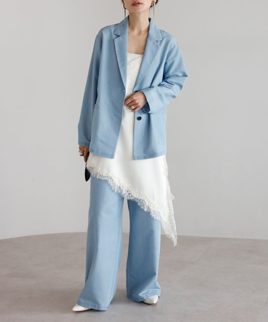 テーラードカラーとフロントボタン仕様で、きちんと感のなかに抜け感を添えたデザイン。