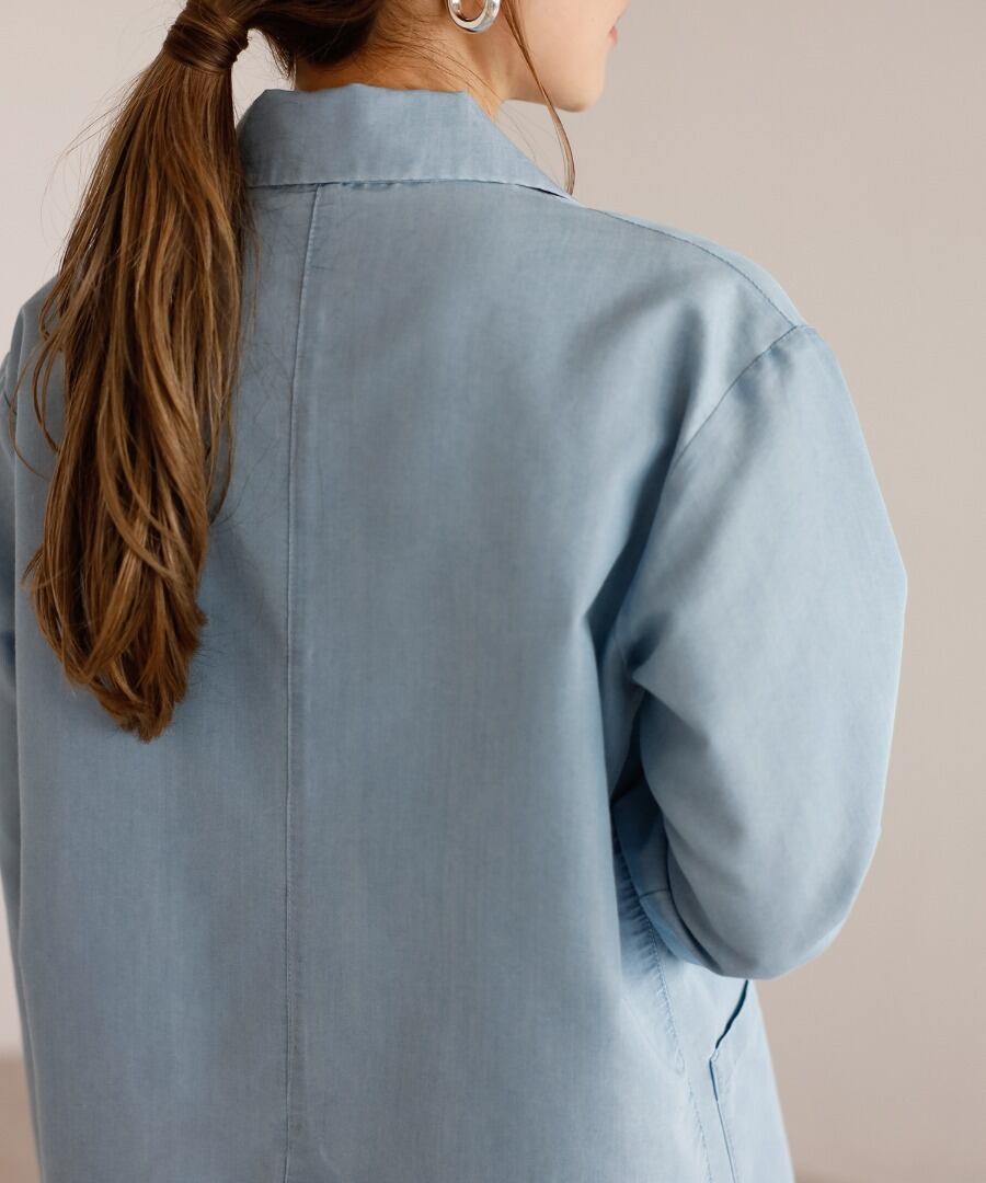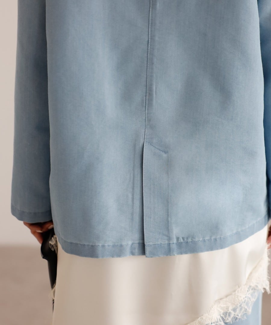 ほんのり透ける3.5オンスのシアーデニム素材を使用した、軽やかな着心地のジャケット。