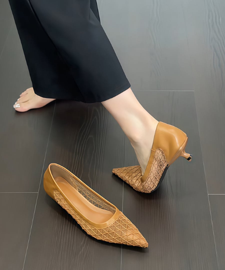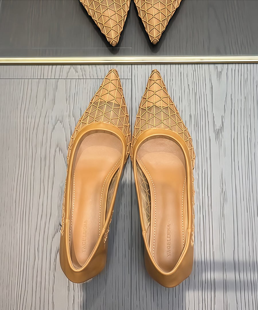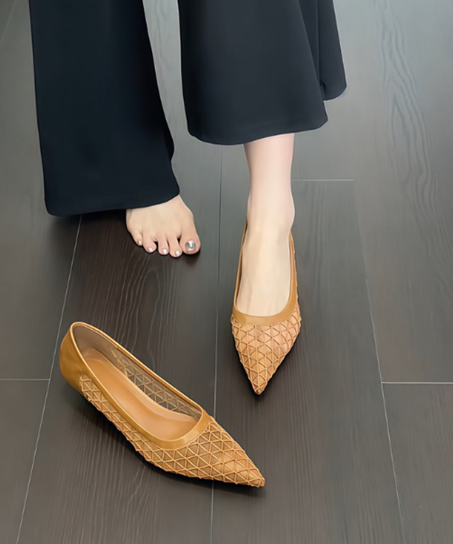 柔らかいラムスキン素材を使用した、ローヒールポインテッドトゥシューズ。