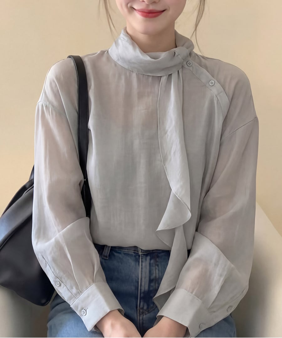 Gray◆シアーリボンブラウス【t-10762】