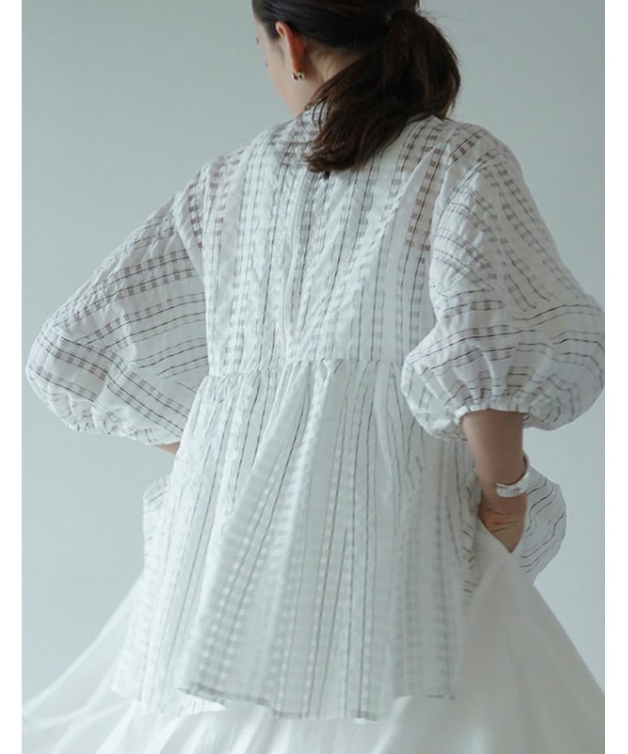 透け感のある生地が重ね着を楽しみ、さらっと羽織るだけで春夏のコーディネートにぴったりです。