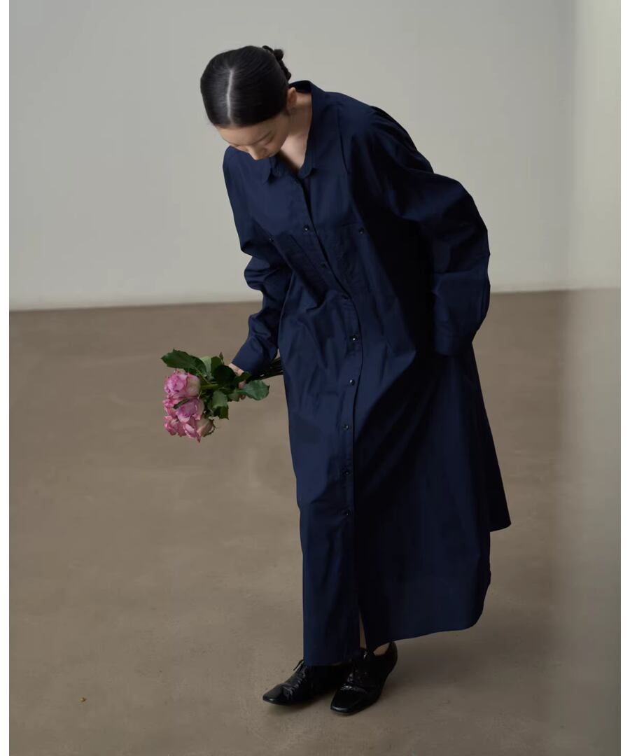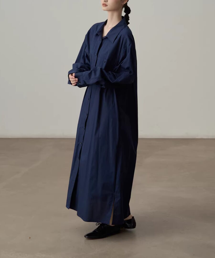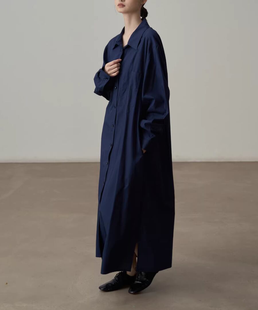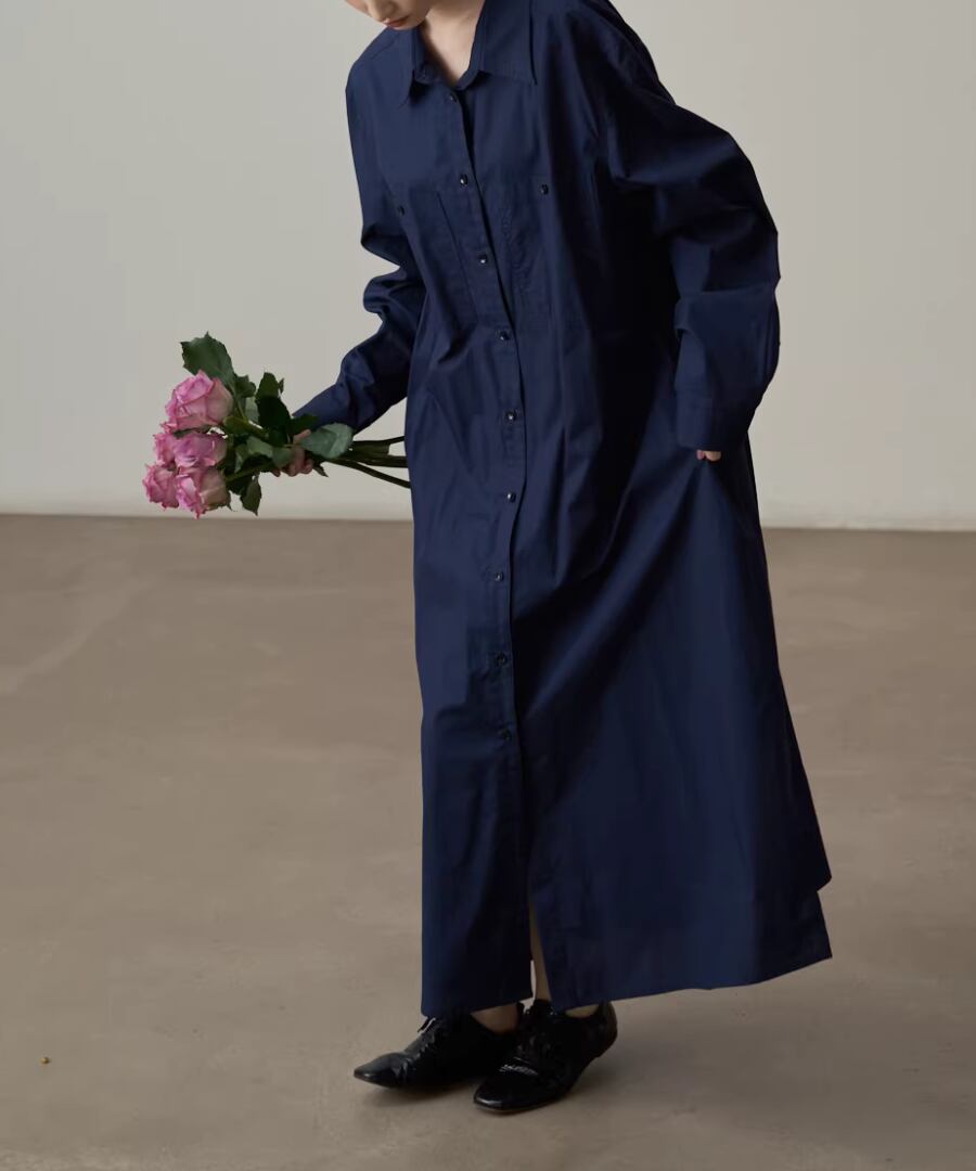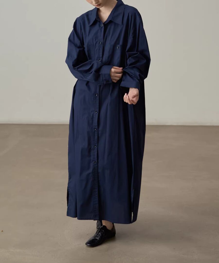 エレガントなスタイルを楽しむピュアコットンシャツワンピース。