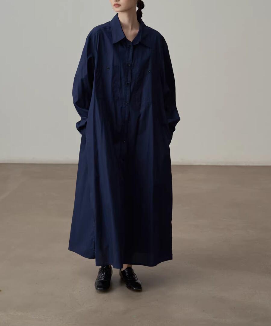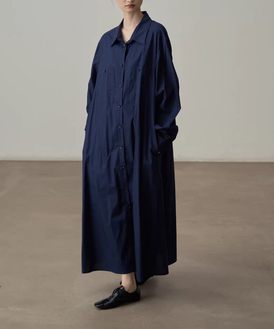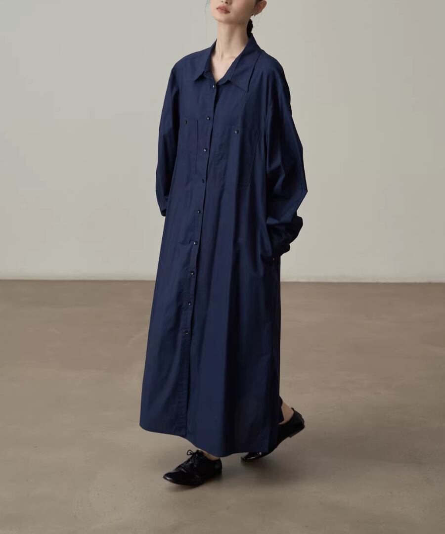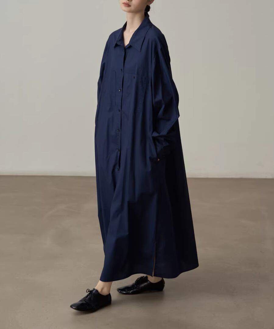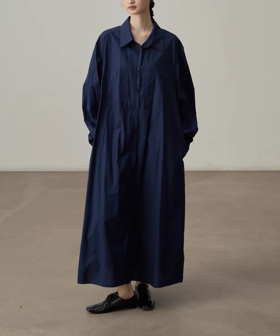 エレガントなスタイルを楽しむピュアコットンシャツワンピース。