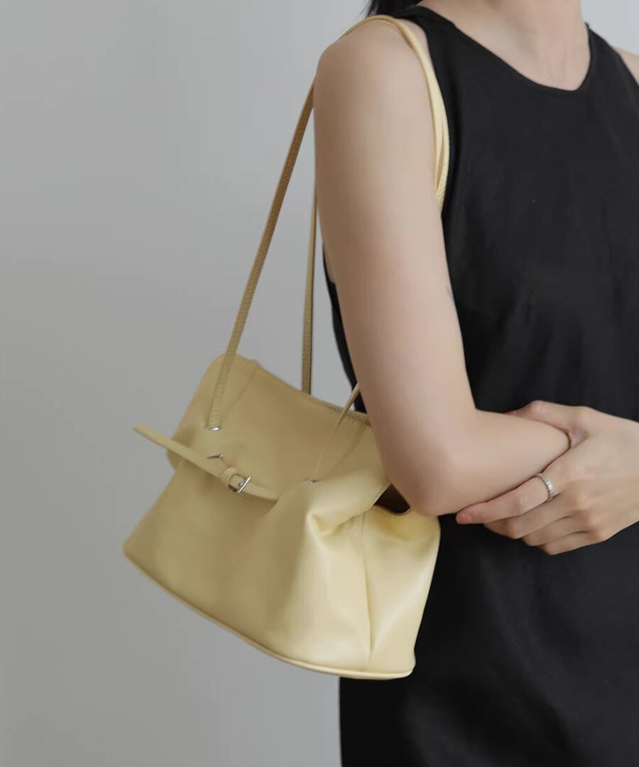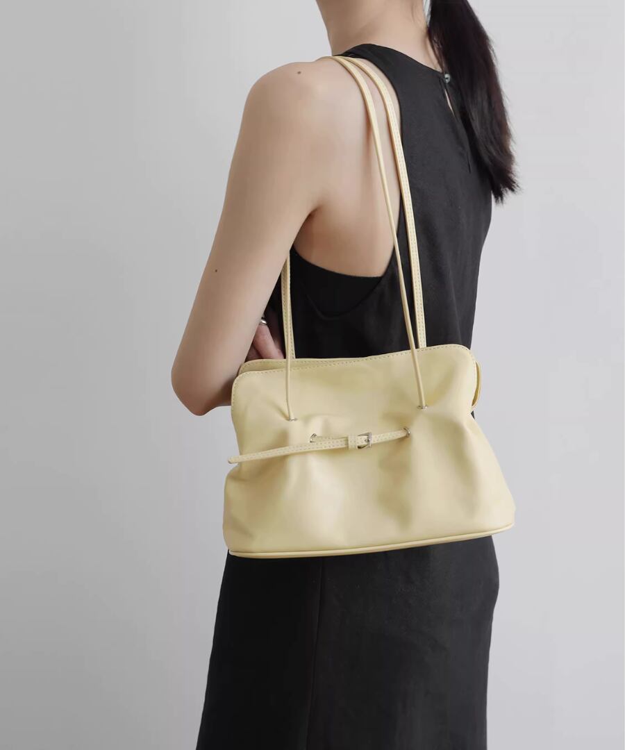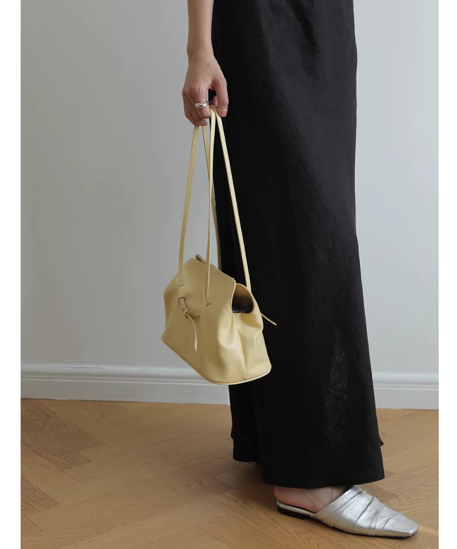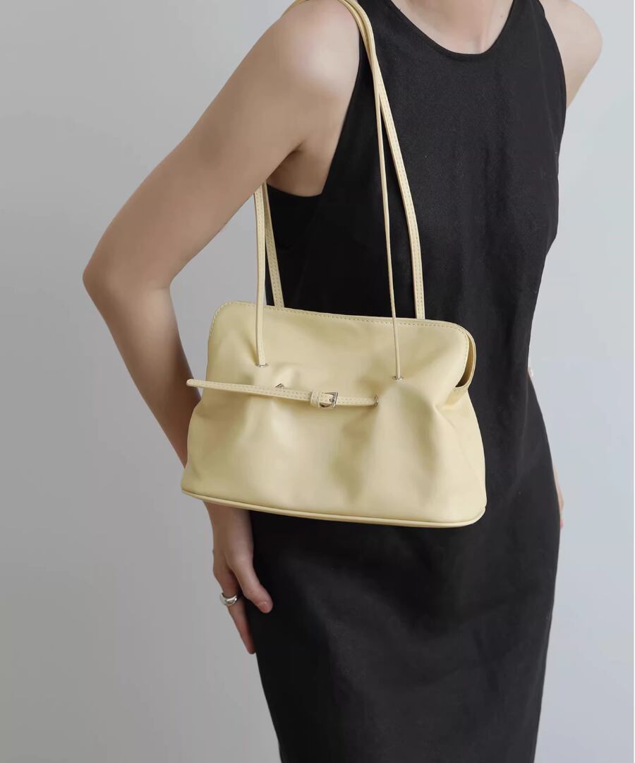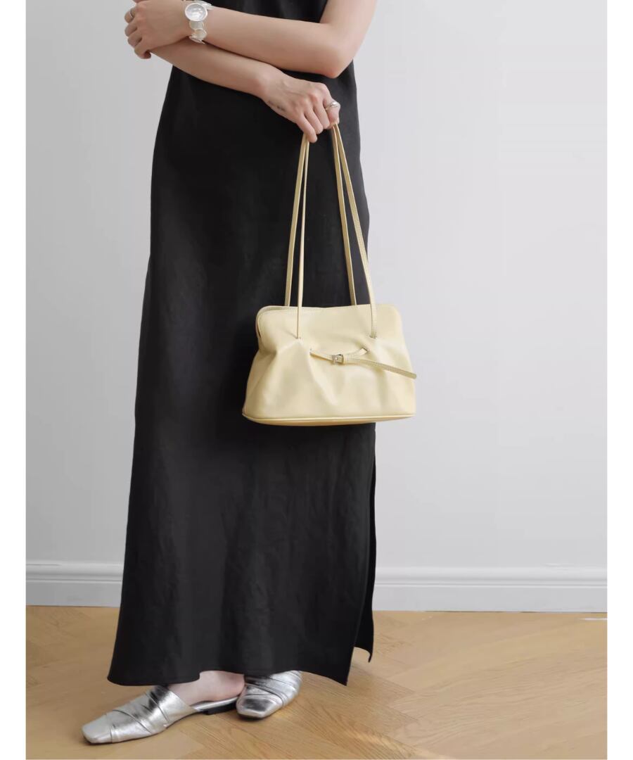 スタイリッシュなクラウドバッグデザインが、どんなコーディネートにも自然に溶け込みます。