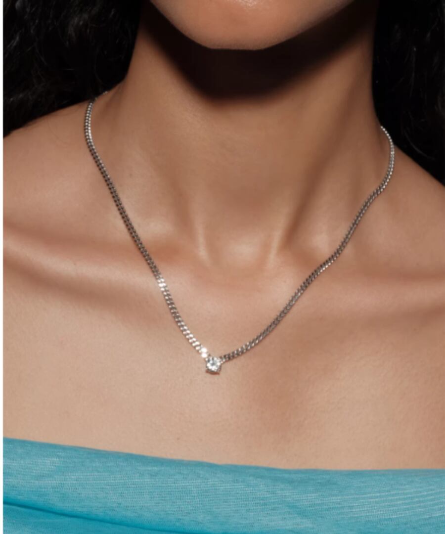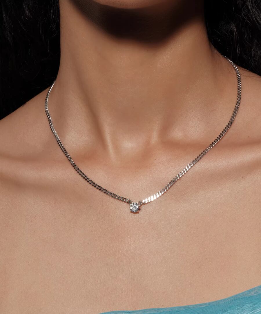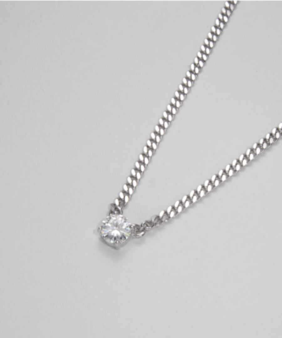 高品質なS925スターリングシルバーを使用した、1カラットのモアッサナイトが輝くフラットチェーンネックレスです。