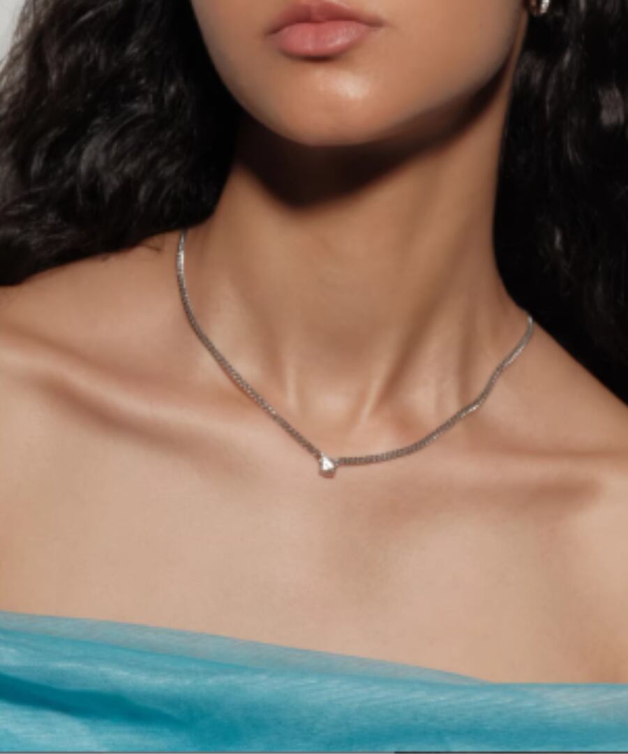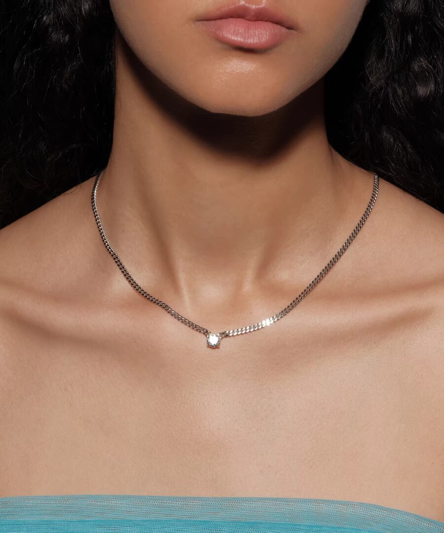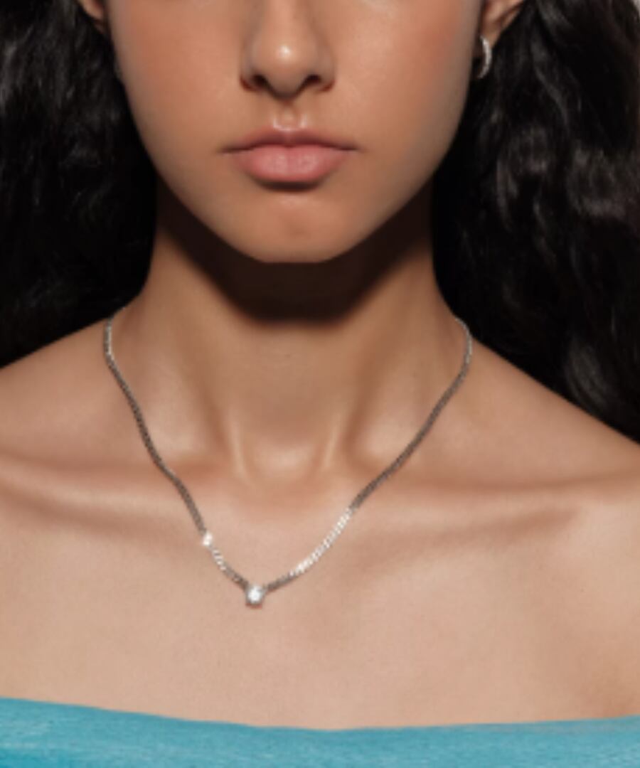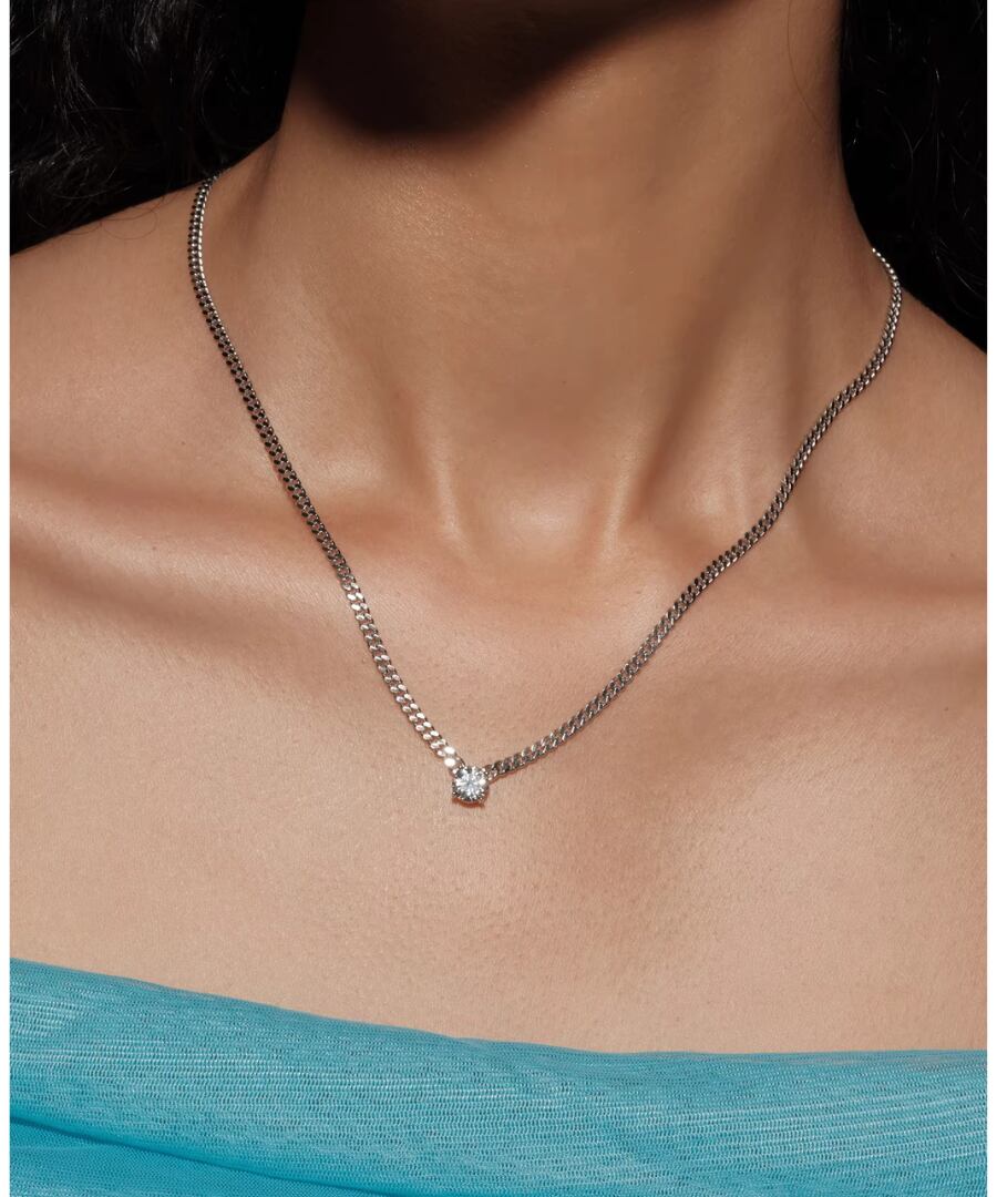 高品質なS925スターリングシルバーを使用した、1カラットのモアッサナイトが輝くフラットチェーンネックレスです。