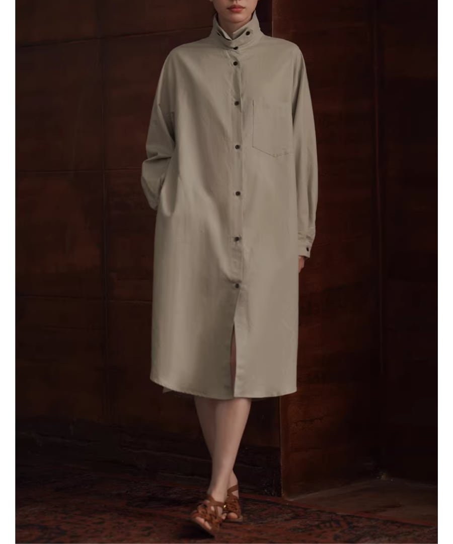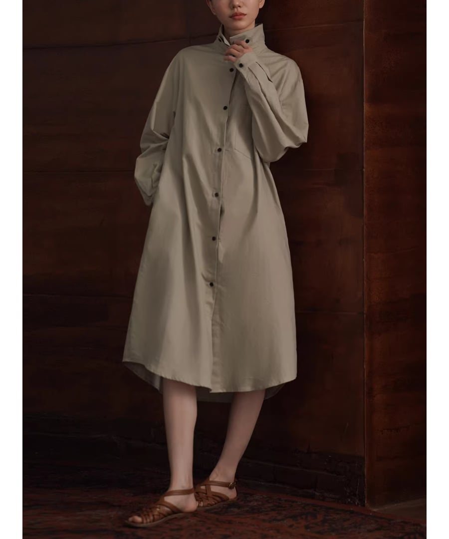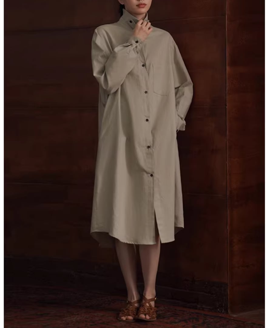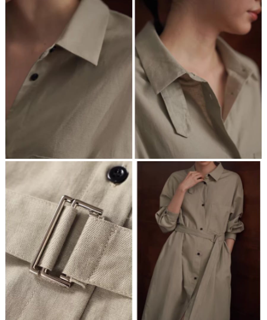 リネンコットン混紡◆シャツカラーワンピース【w-30521】