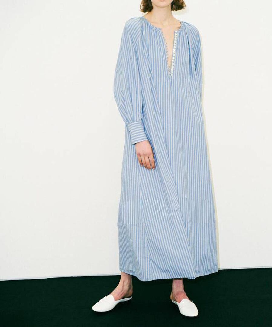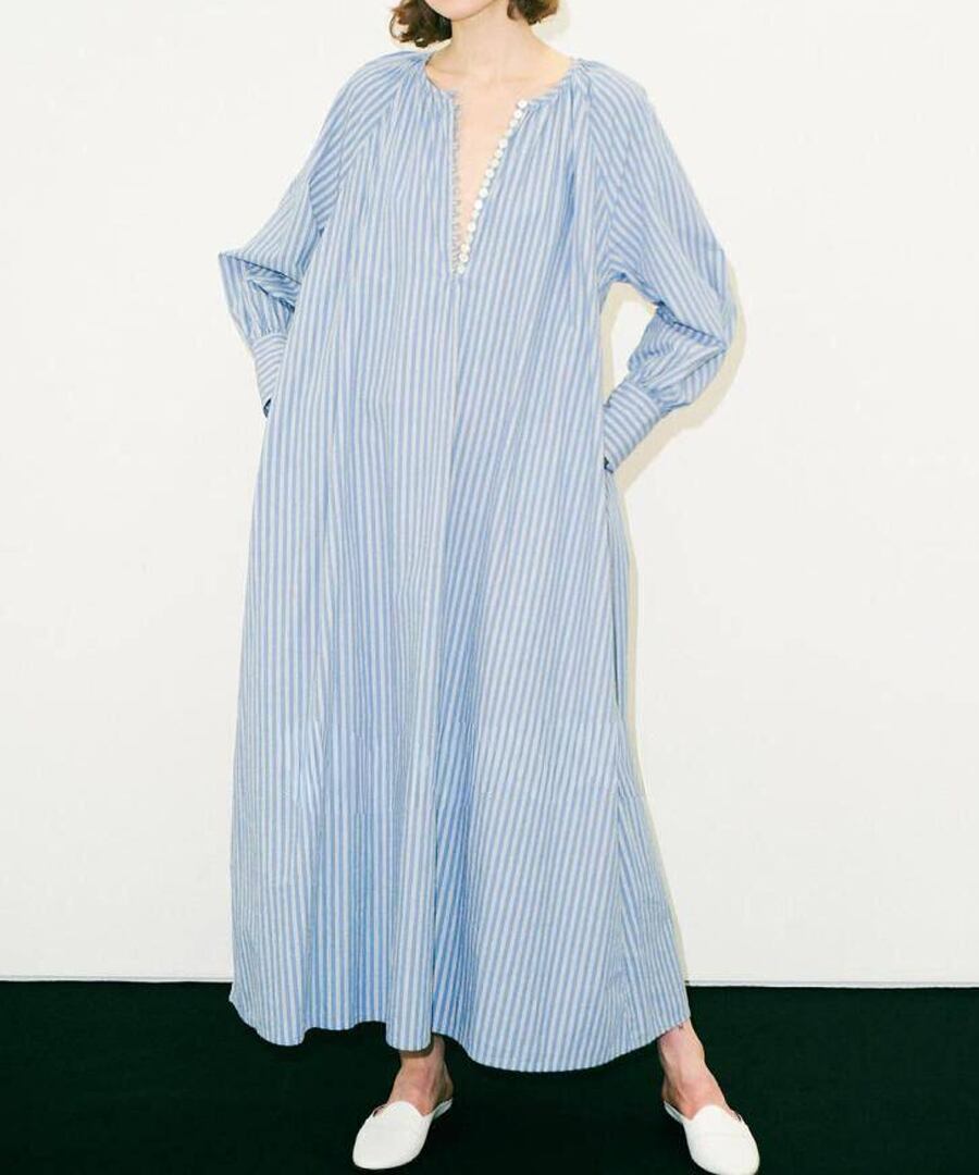 エレガントでありながらリラックス感のある、ゆったりストライプのシャツワンピース。