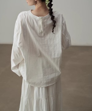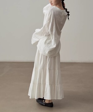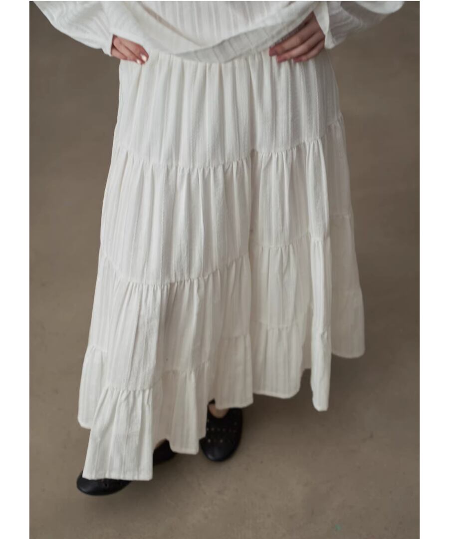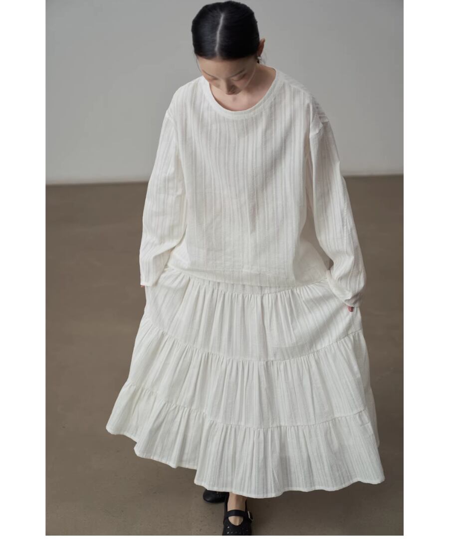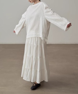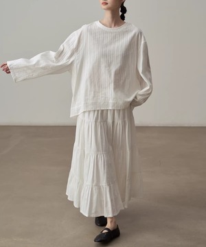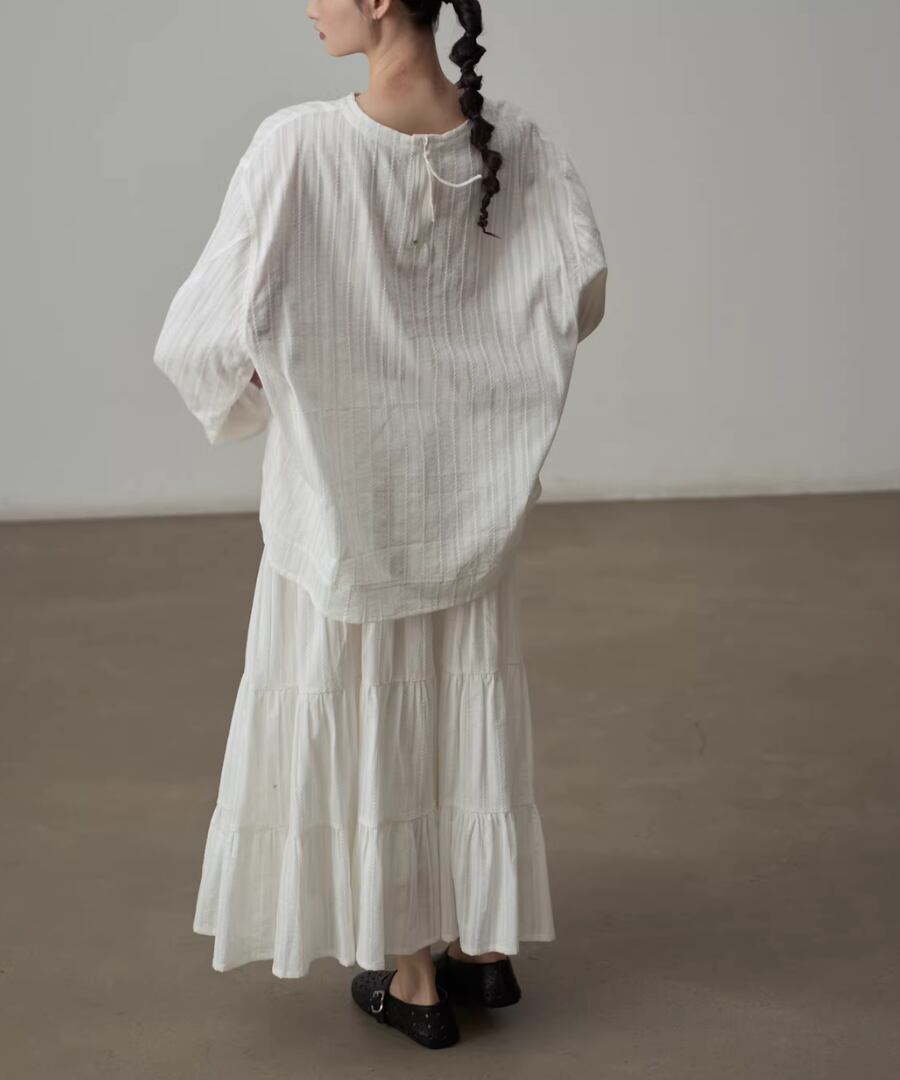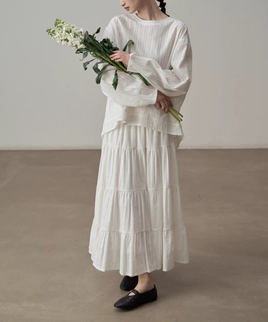 重ね着風のスカートと合わせることで、バケーションにもぴったりなスタイルをつくり出します。