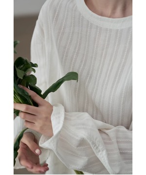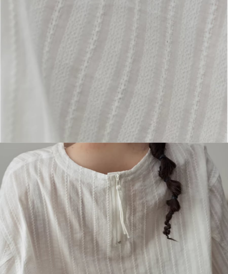 質感のあるストライプ柄が目を引き、リラックスした雰囲気を演出するゆったりとしたデザインが魅力です。