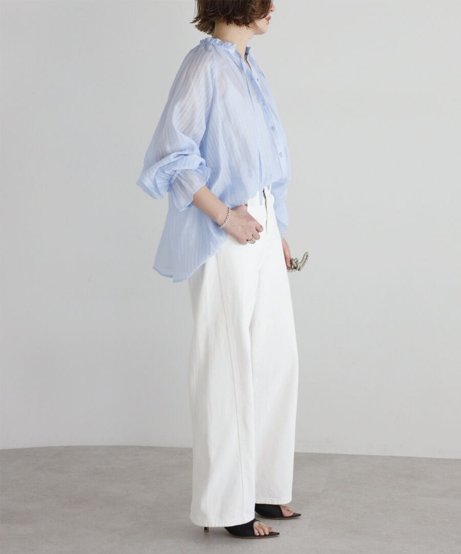 透け感のあるストライプ素材を使用した軽やかなブラウス。