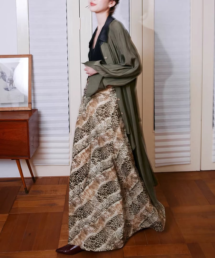 個性的なレオパード柄で、スタイリッシュな魅力が詰まったAラインスカート。