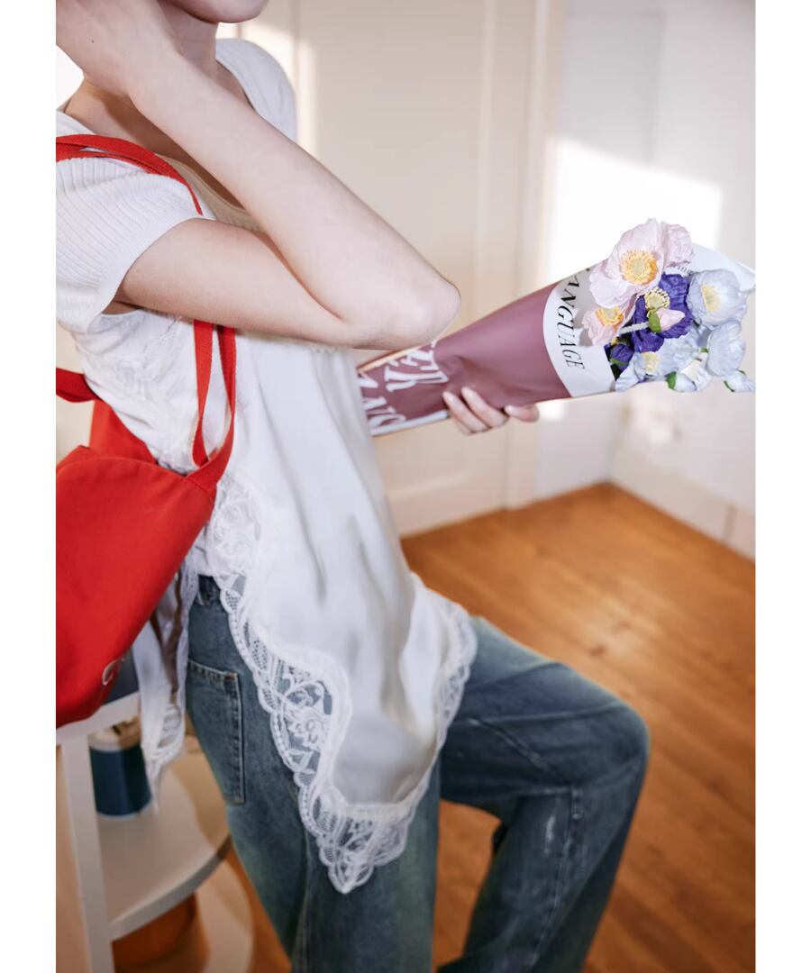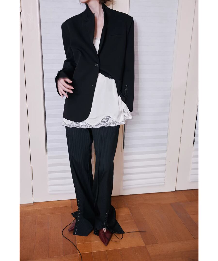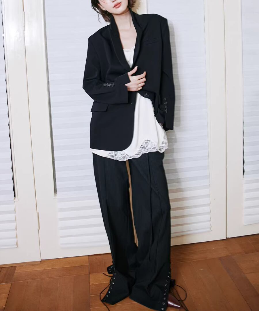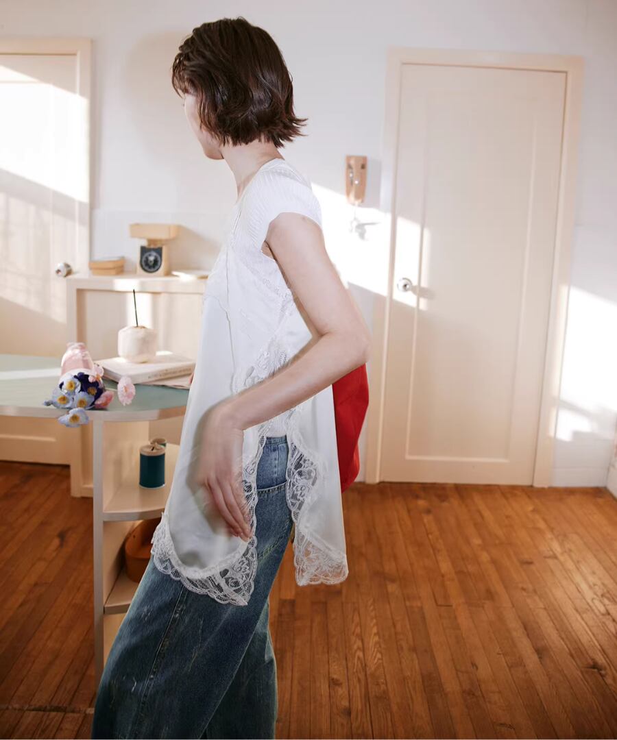 レーストリムが施されたデザインは、女性らしさを引き立てつつ、重ね着スタイルにもぴったり。