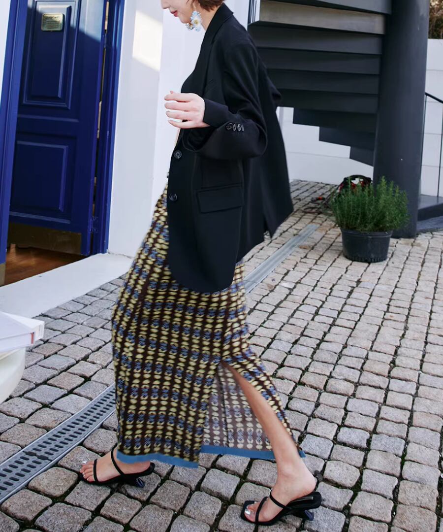 ラミー混◆カラーブロックプリントスカート【s-60102】