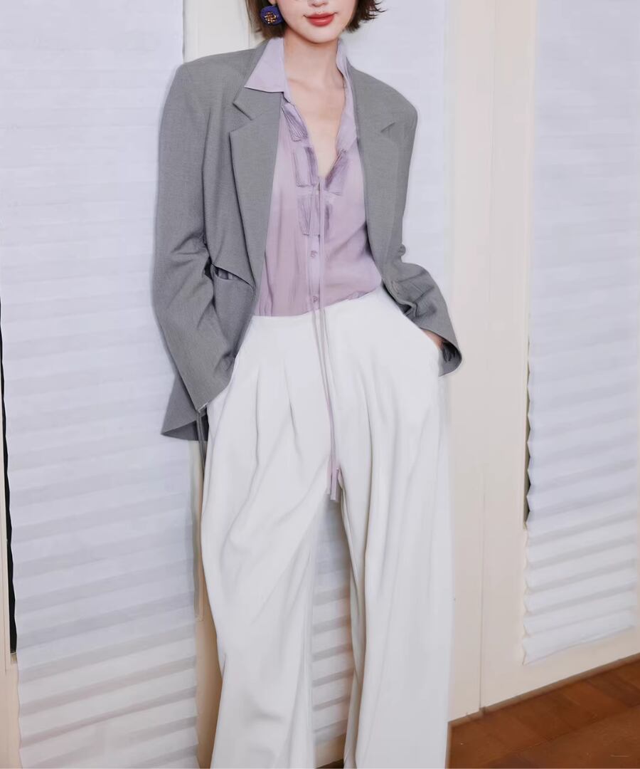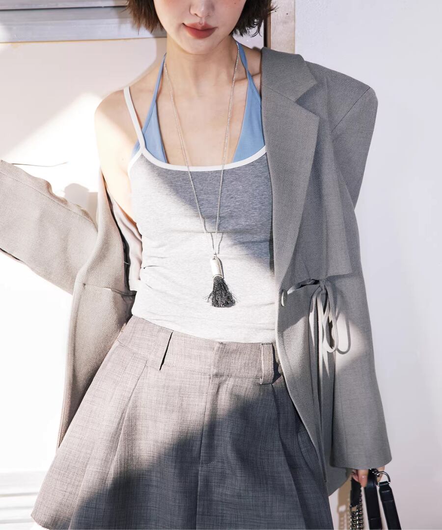 カット&ドローストリングデザイン◆グレージャケット【a-50205】