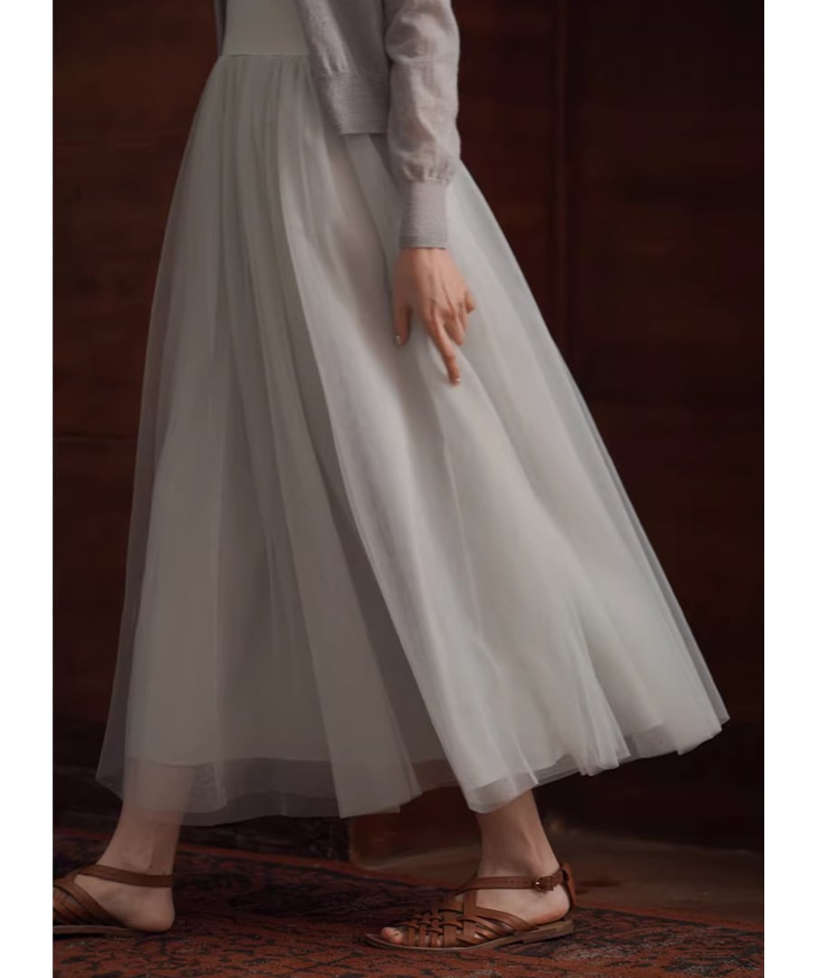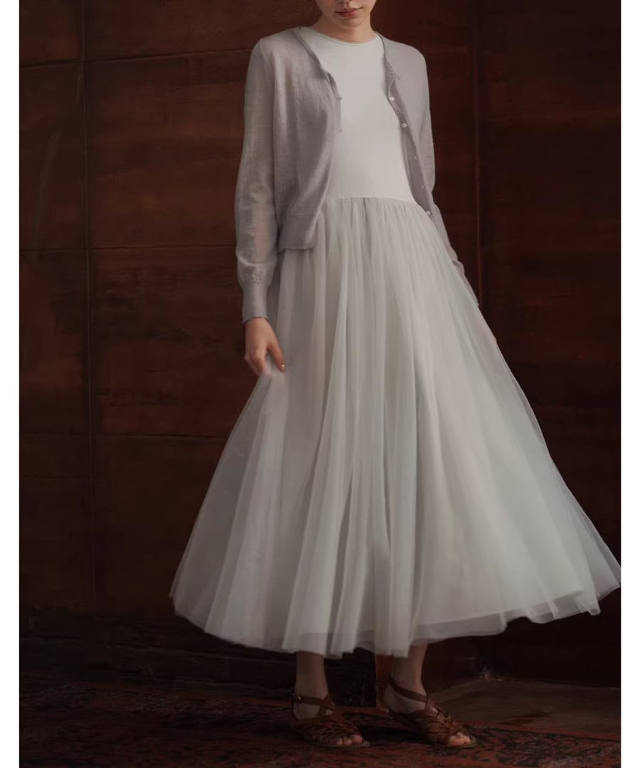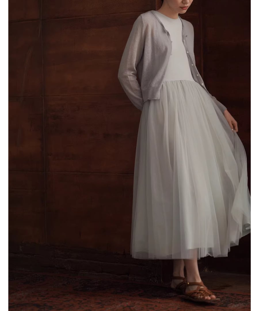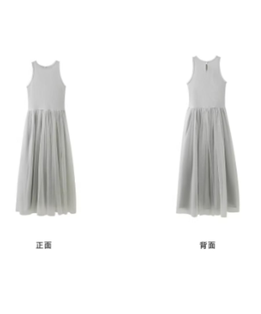 ラウンドネック◆メッシュスカートワンピース【w-30431】
