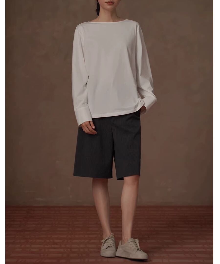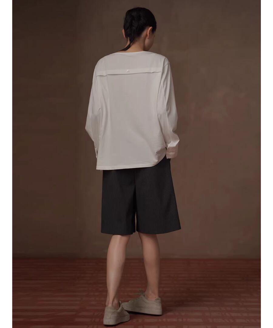 肩のラインを柔らかく演出するドロップショルダーが、リラックス感をプラスしてくれます。