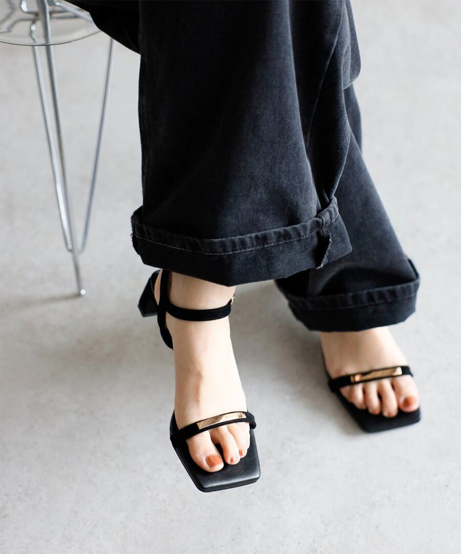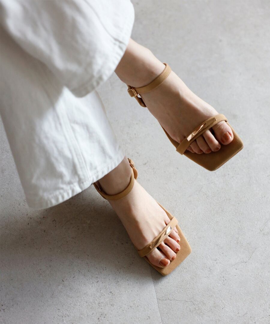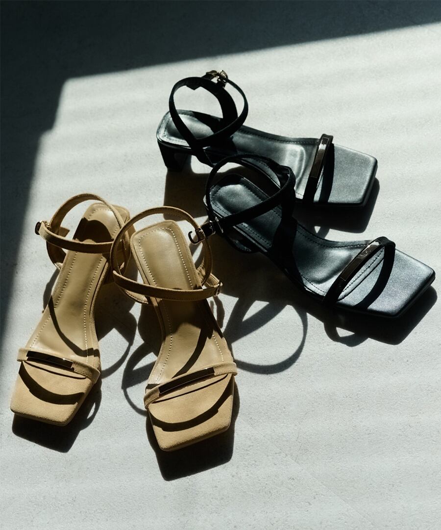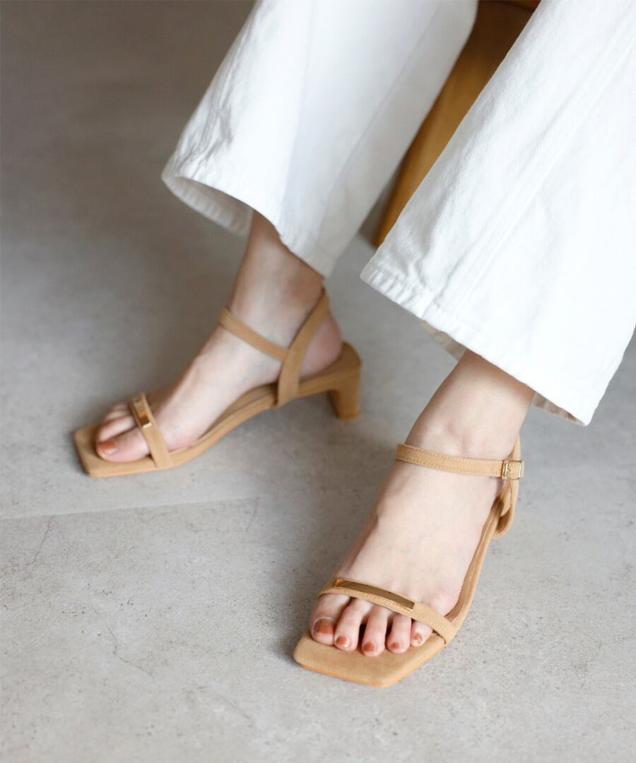 華奢なストラップとスクエアトゥで洗練された足元に。
