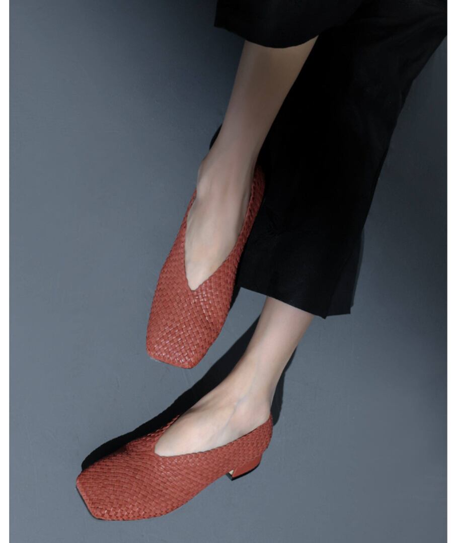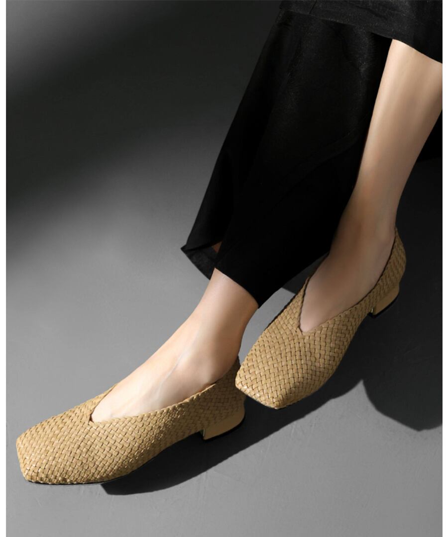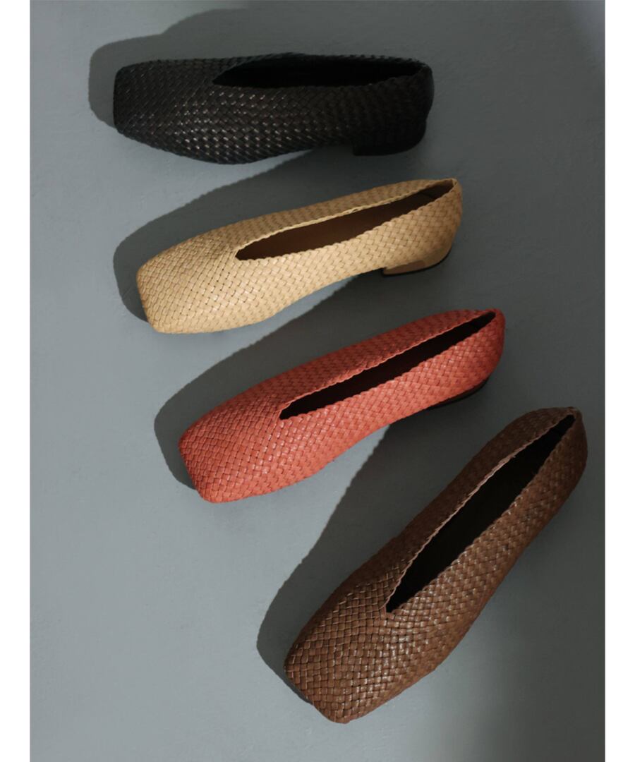 スタイリッシュでありながら、安定感のある履き心地を実現するラムスキンの編み込みボートシューズ。