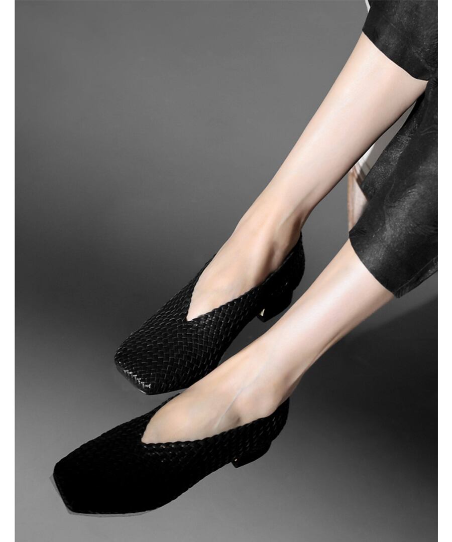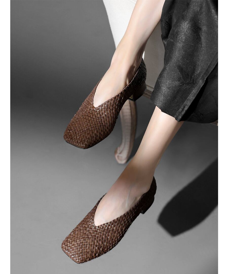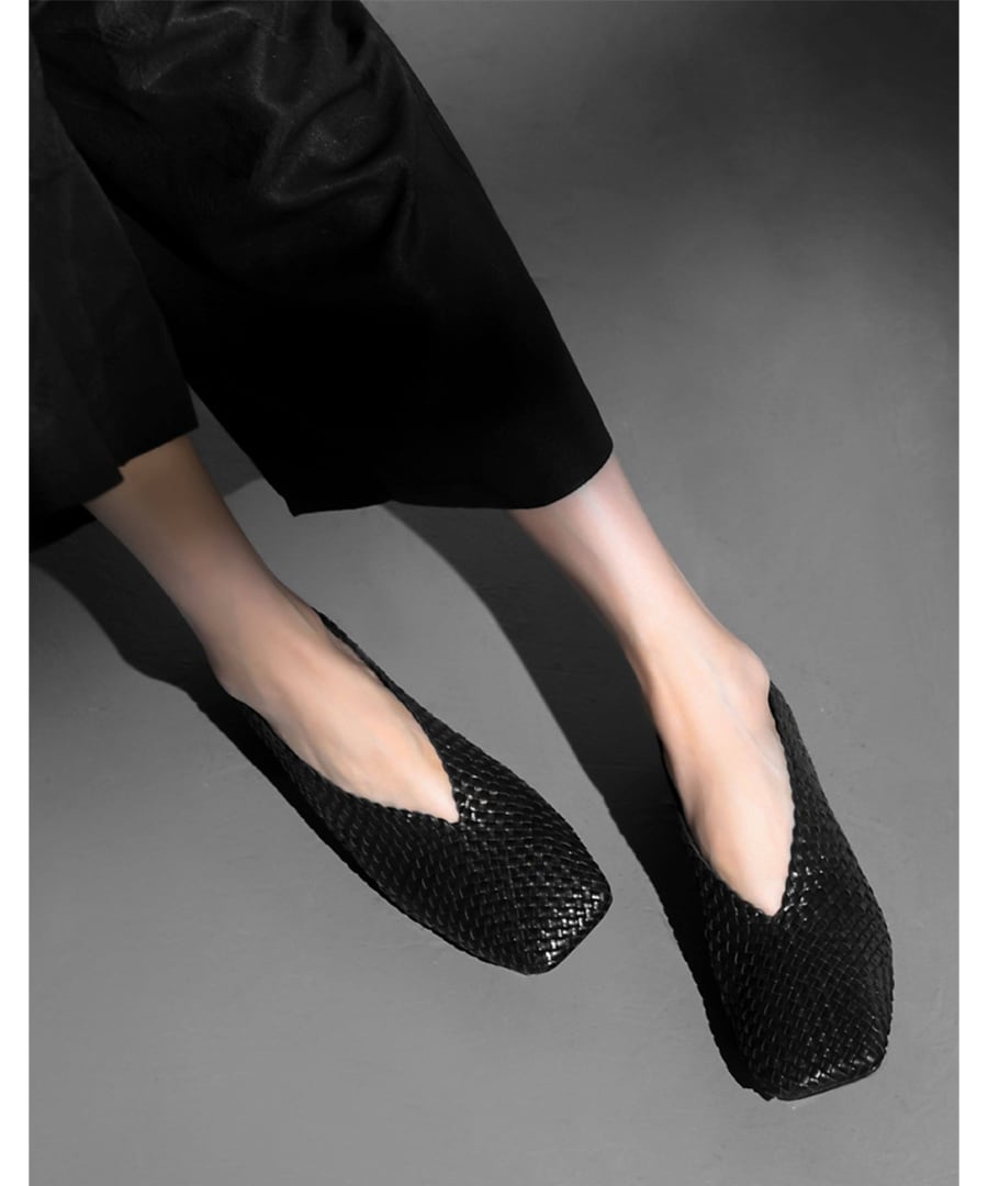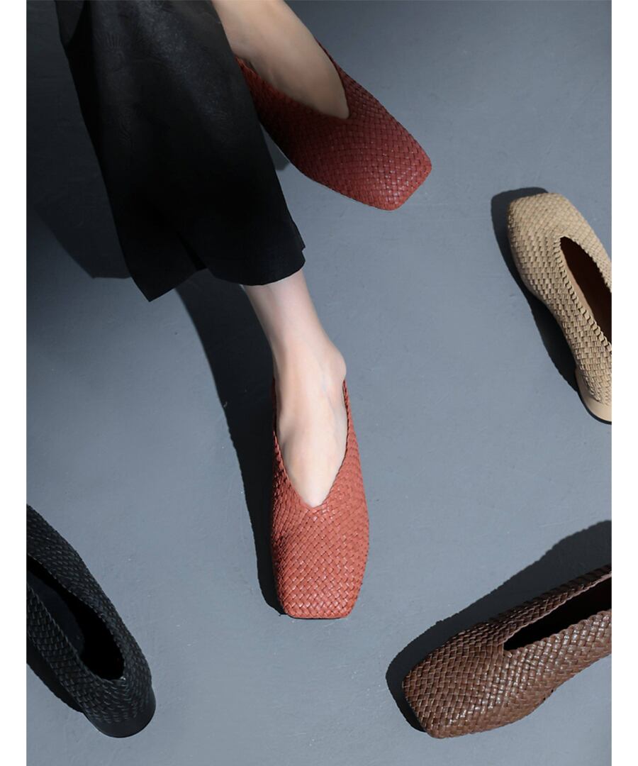 スタイリッシュでありながら、安定感のある履き心地を実現するラムスキンの編み込みボートシューズ。