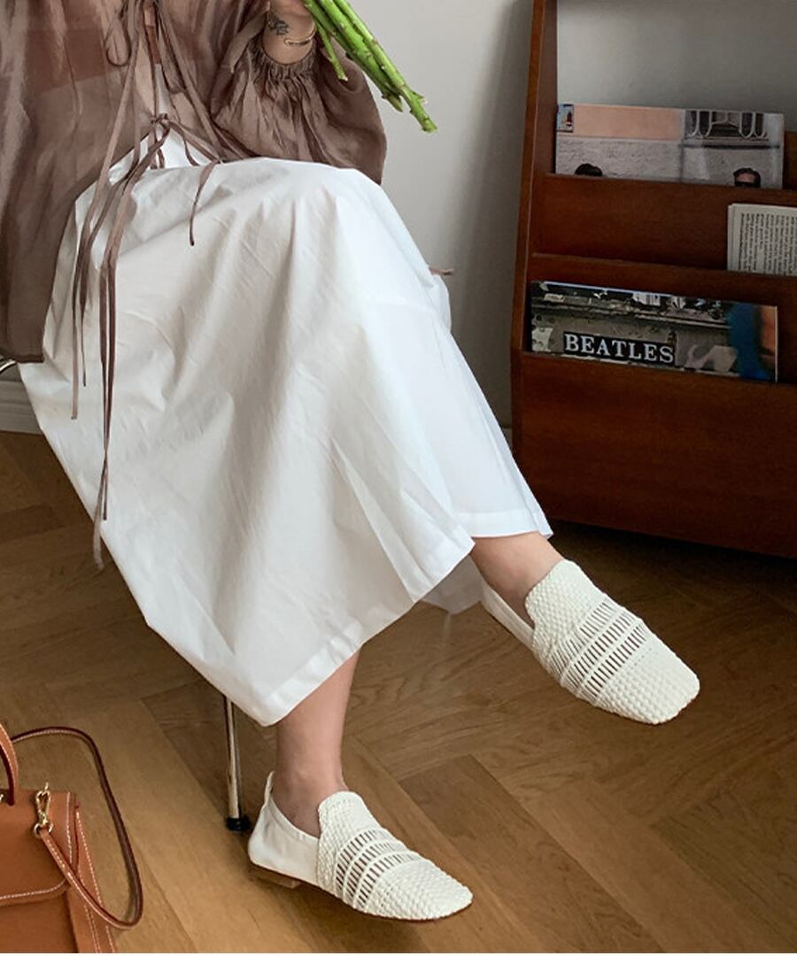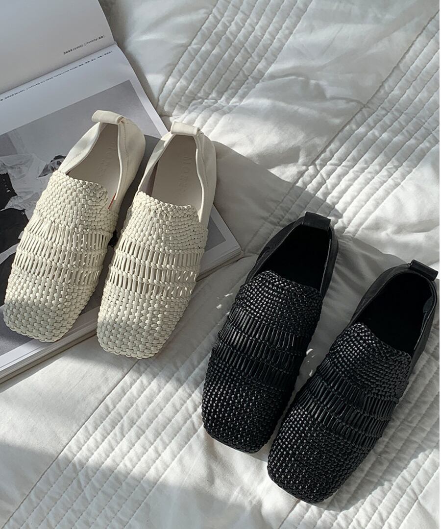手編み本革◆スクエアトゥフラットシューズ【e-70407】
