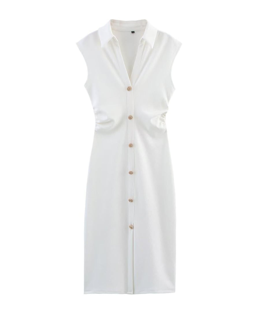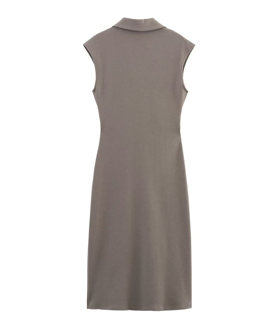シンプルながらも洗練された印象を与えるピケ素材のシャツワンピース。