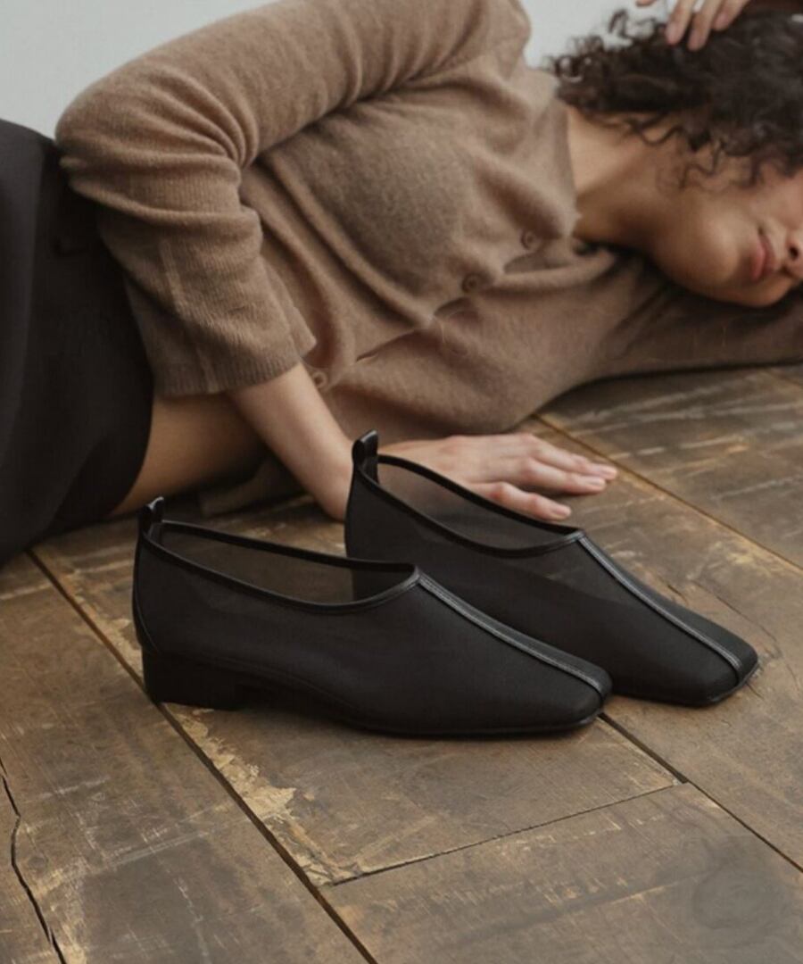 シンプルでありながら、洗練された印象を与えるメッシュシューズ。