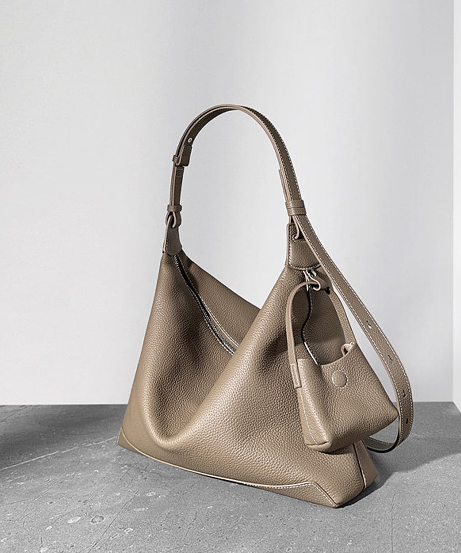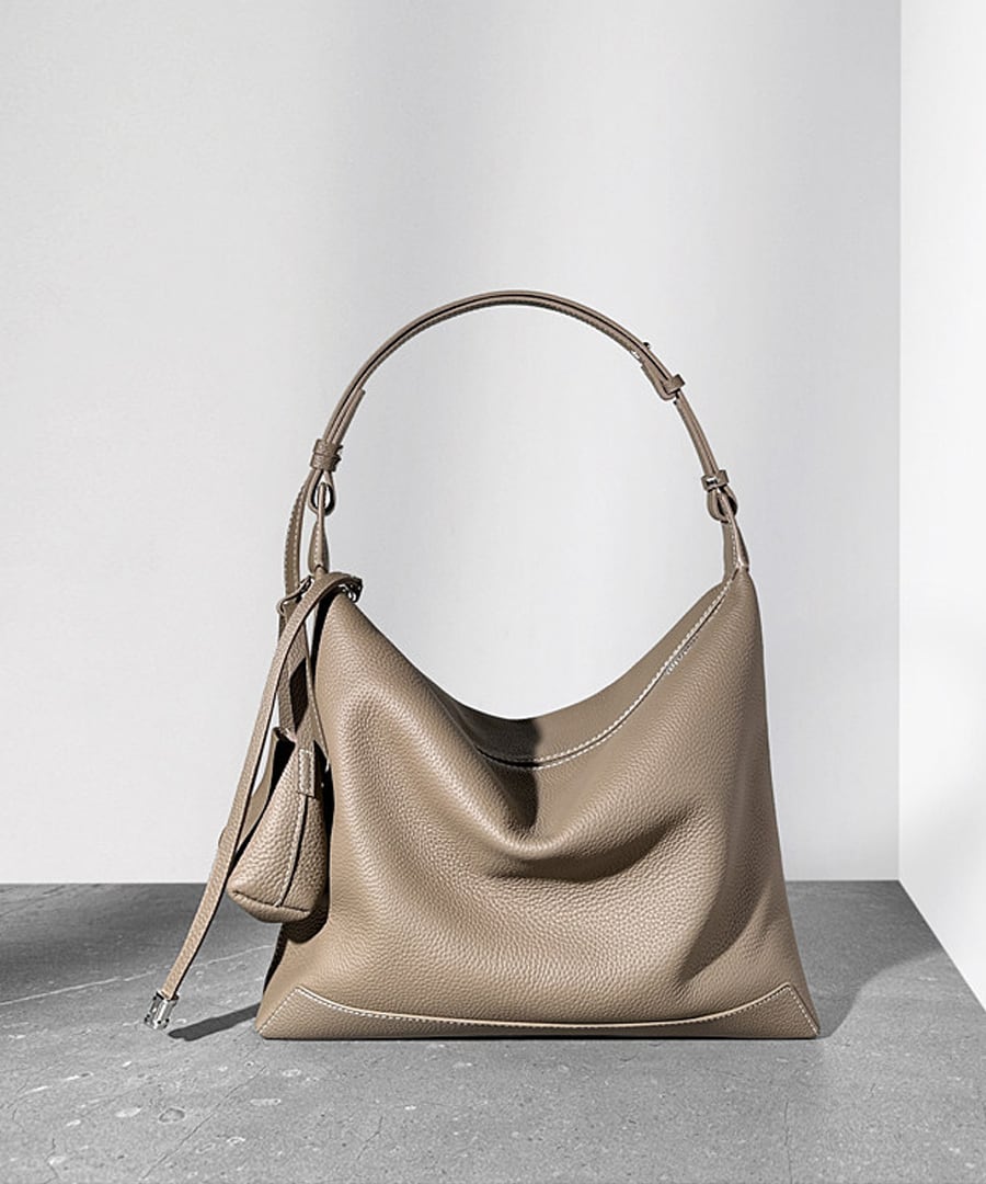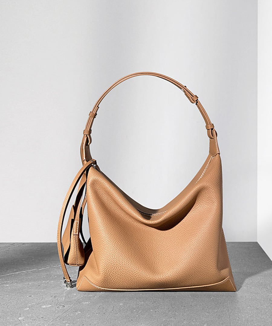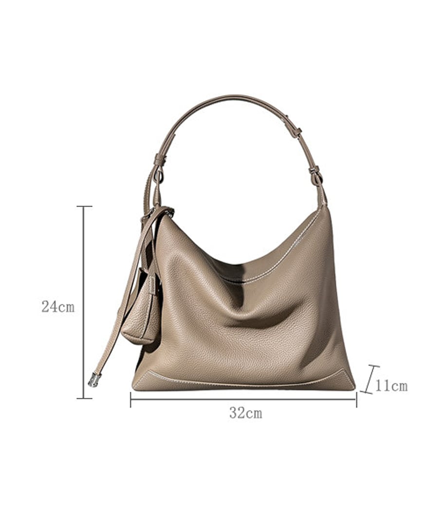 カジュアルかつリラックスした雰囲気を演出する、トップグレイン牛革のショルダートートバッグ。
