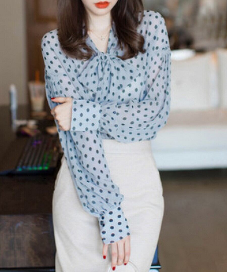 水玉シフォンシャツ【t-10074】