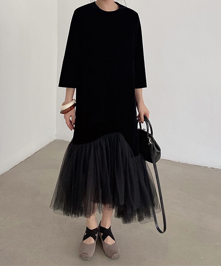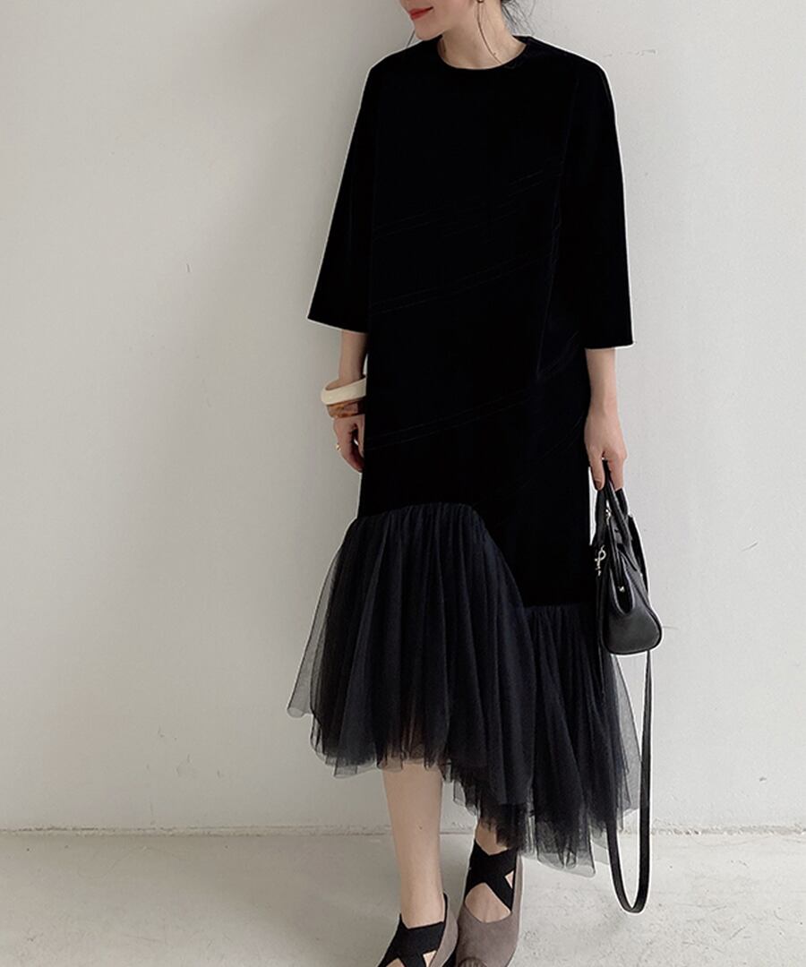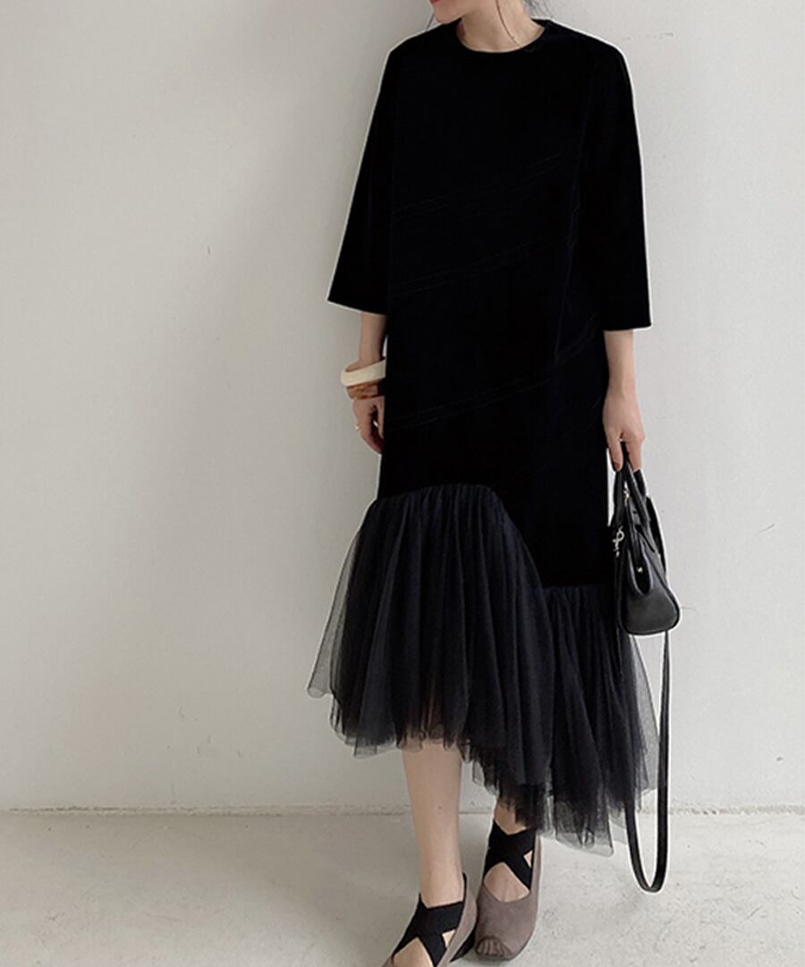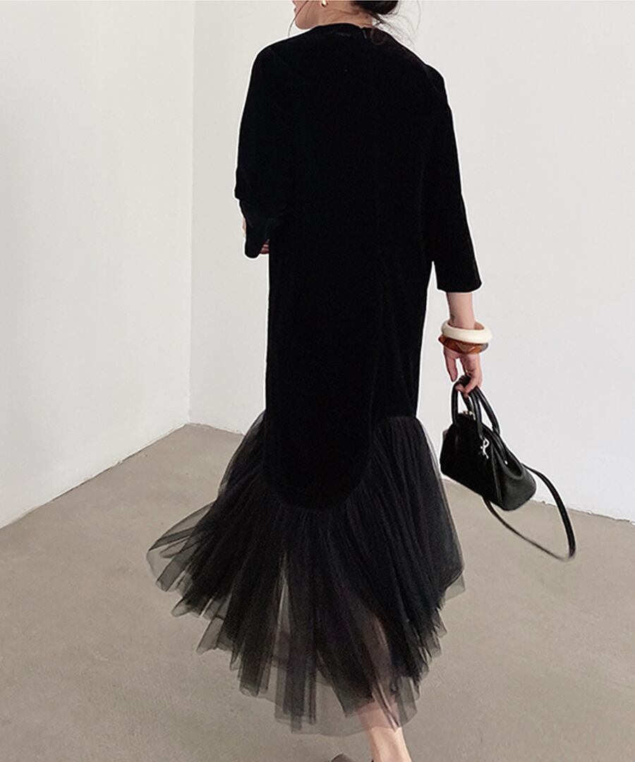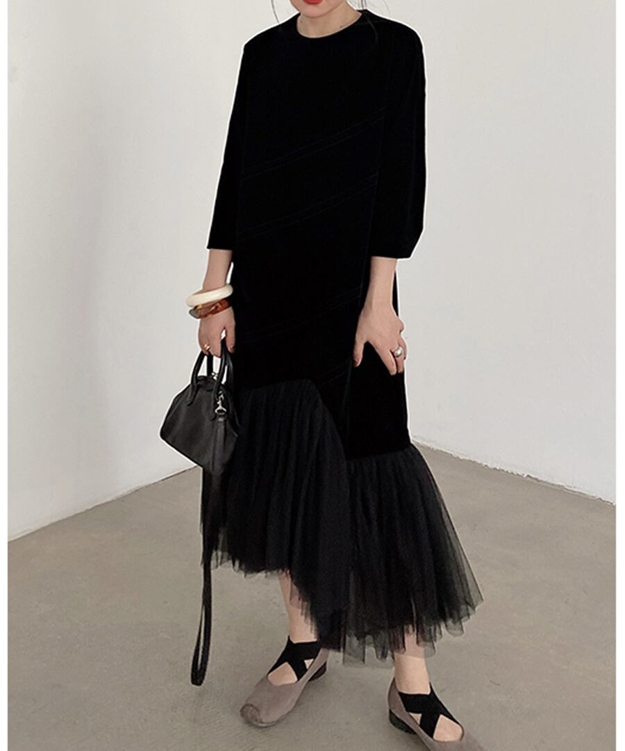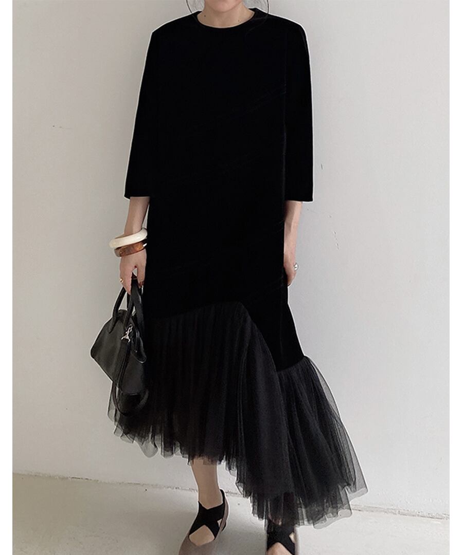 翌日発送◆レイヤードアシンメトリーマーメイドワンピース【w-30035】