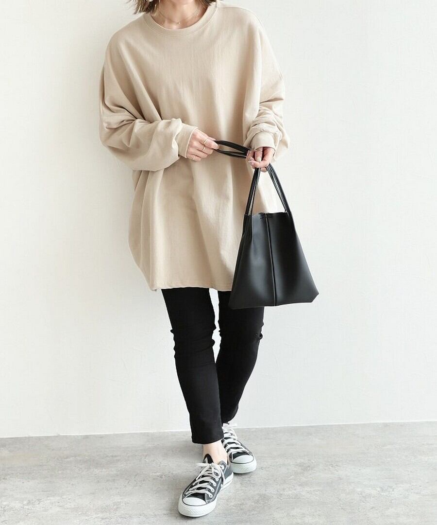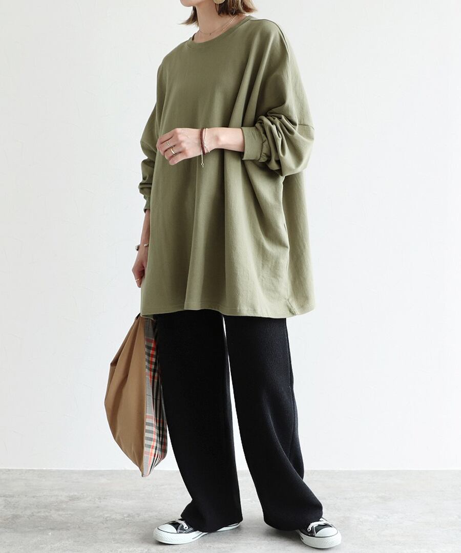 ゆるシルエットで程よくオシャレに体型をカバー。