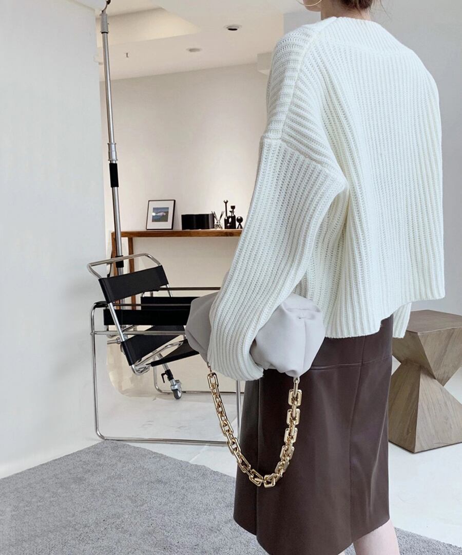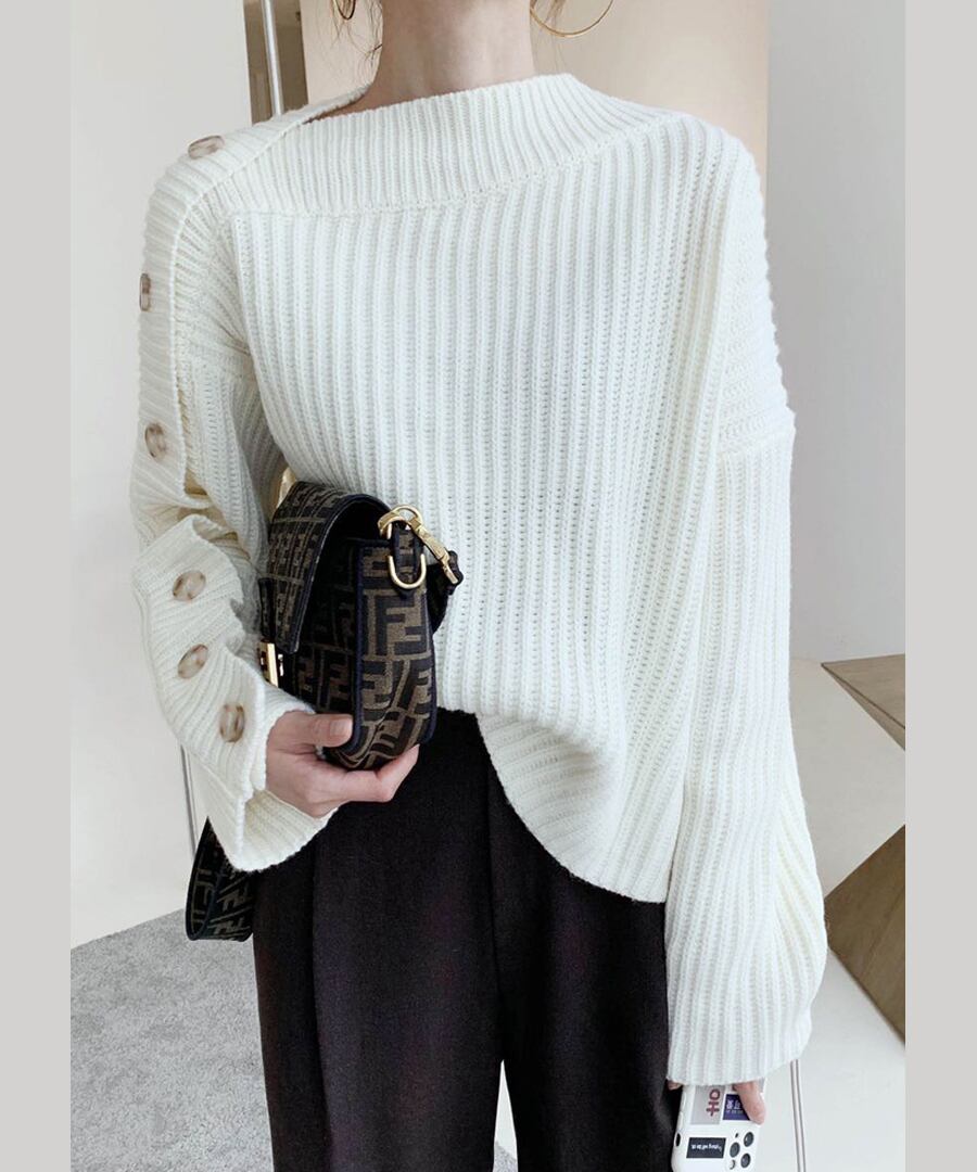 アシンメトリーなオフショルダーニットトップス
