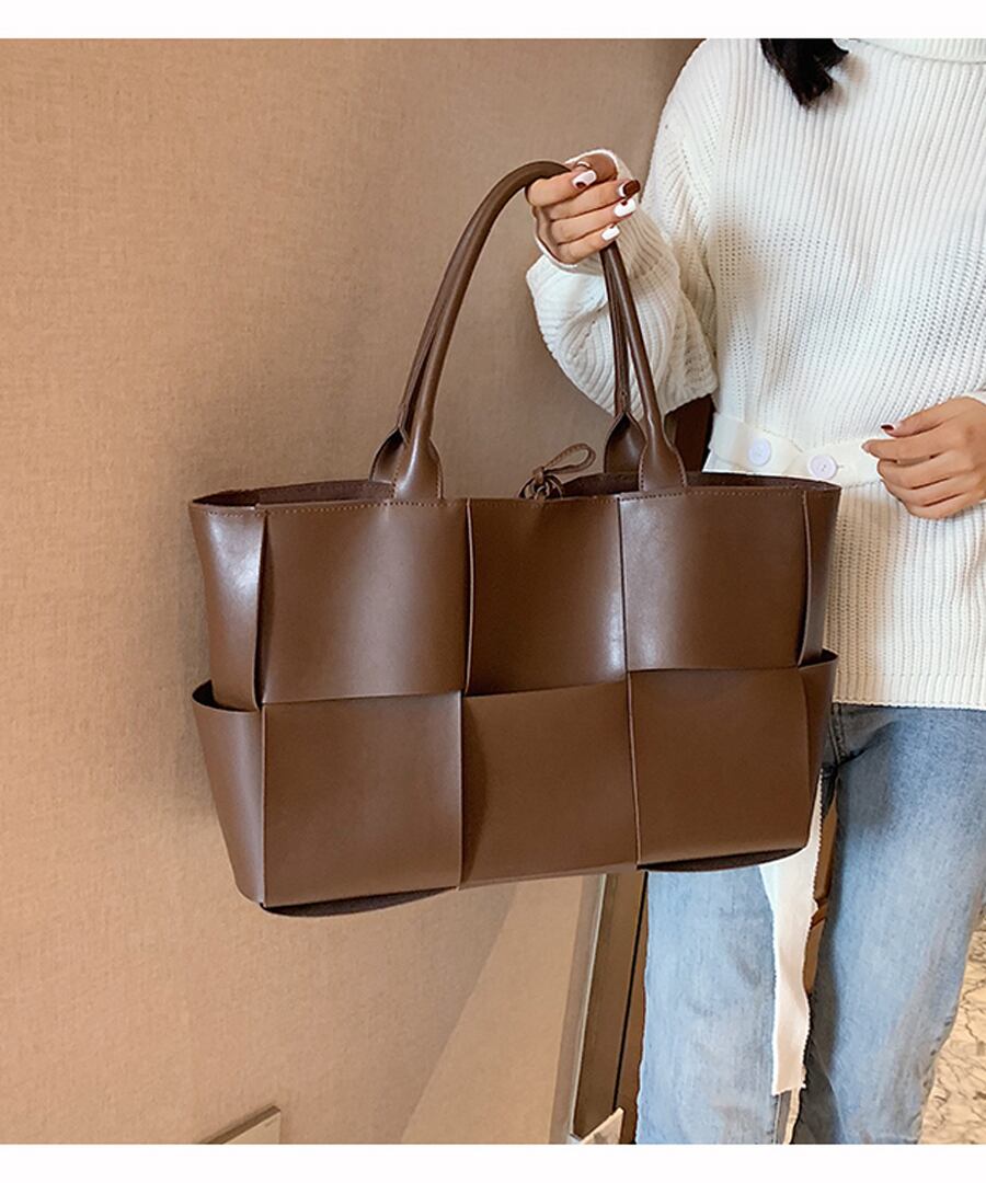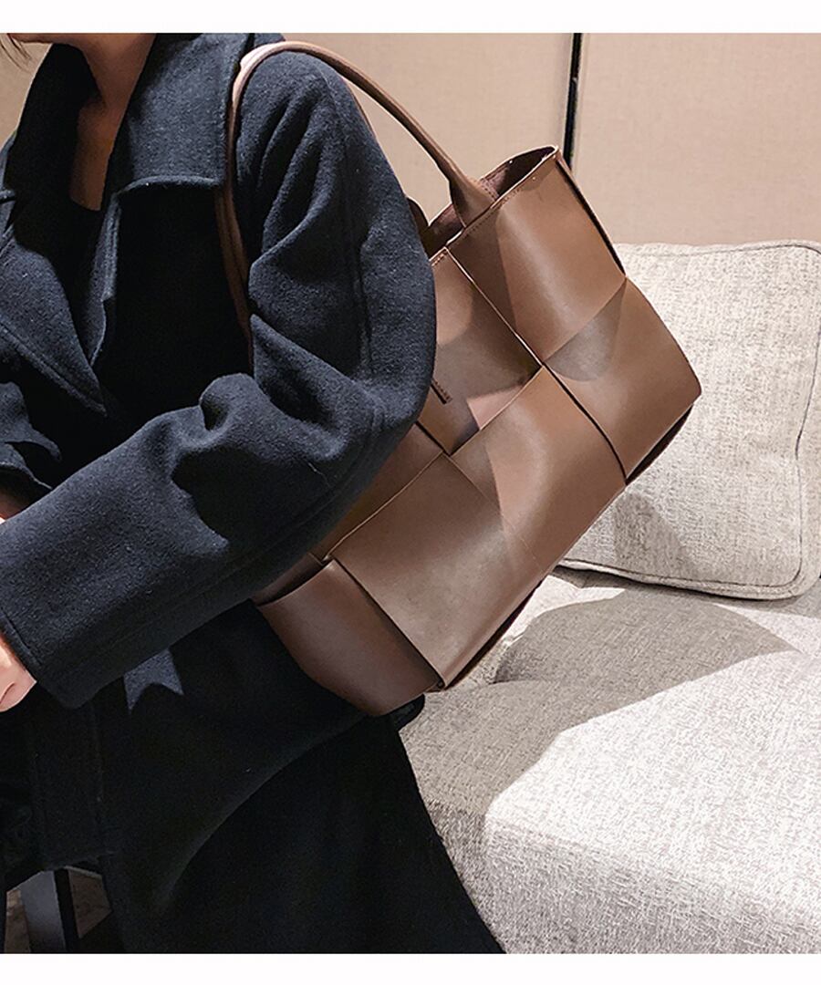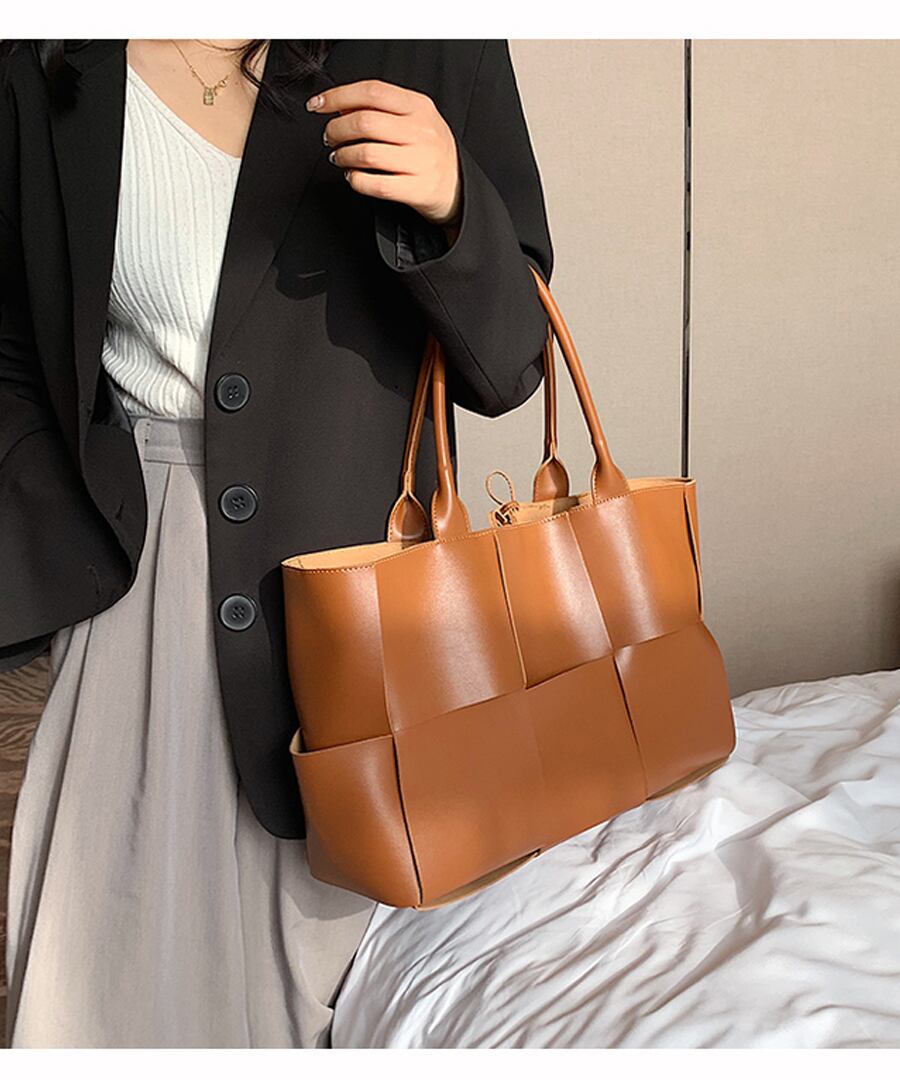 レディースウーブンソフトフェイクレザーバッグ【e-70052】