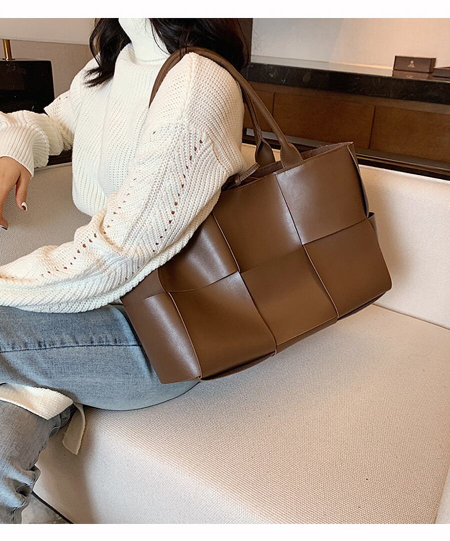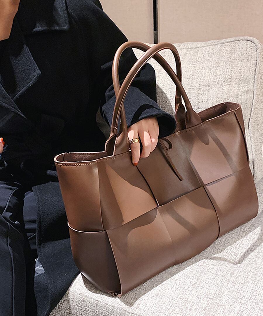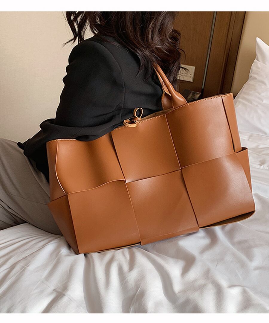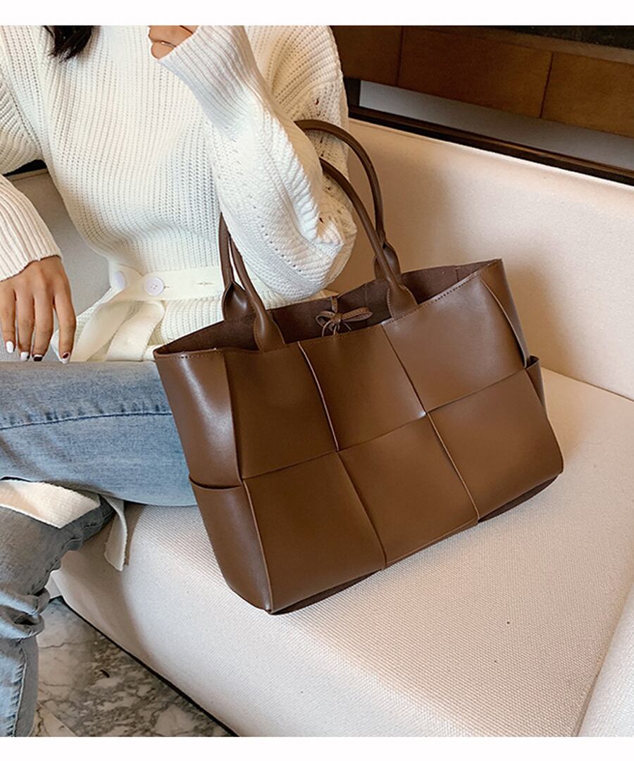 レディースウーブンソフトフェイクレザーバッグ【e-70052】