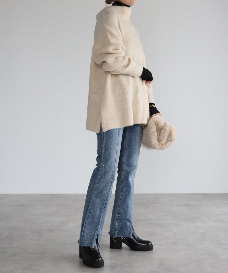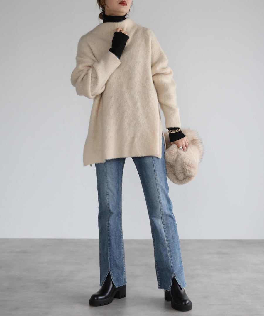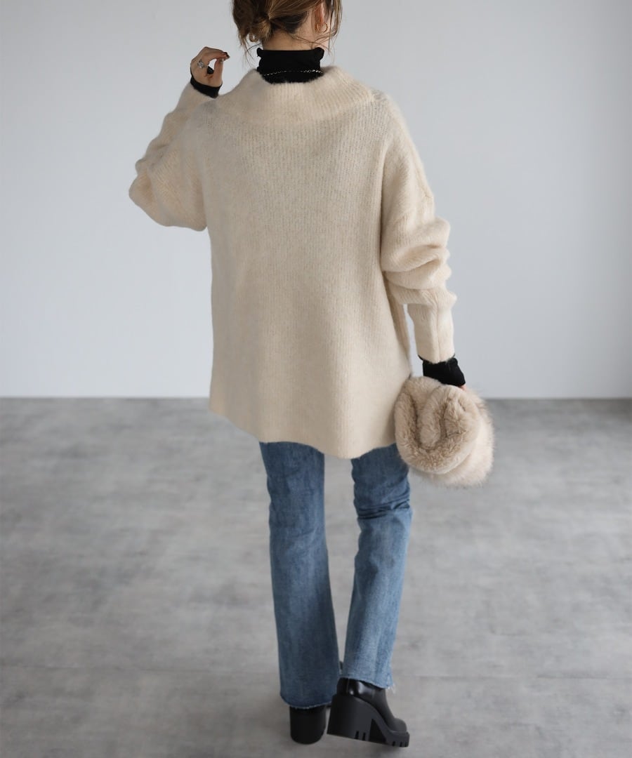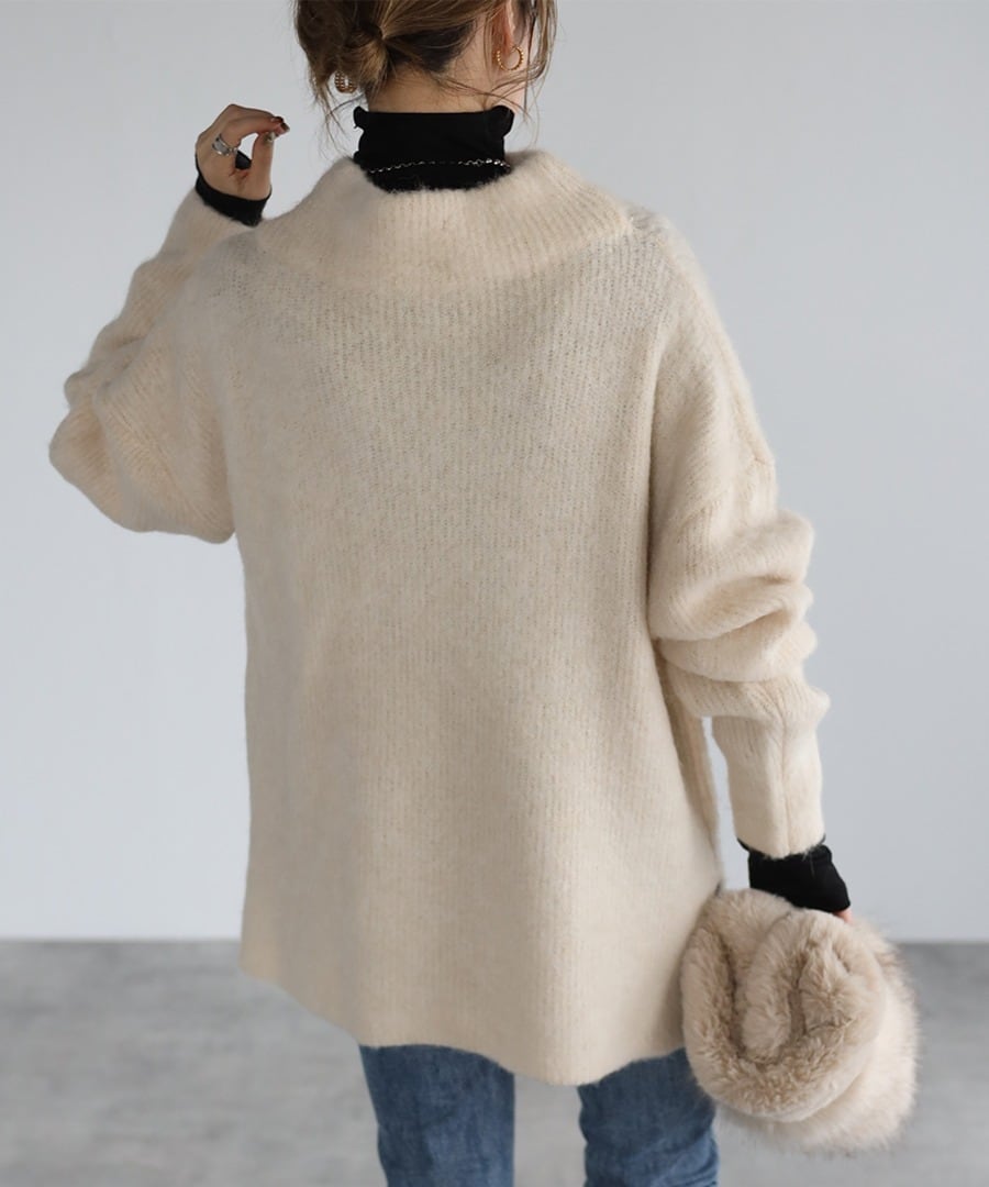 翌日発送◆アルパカ混ハイネックプルオーバー【t-10125】