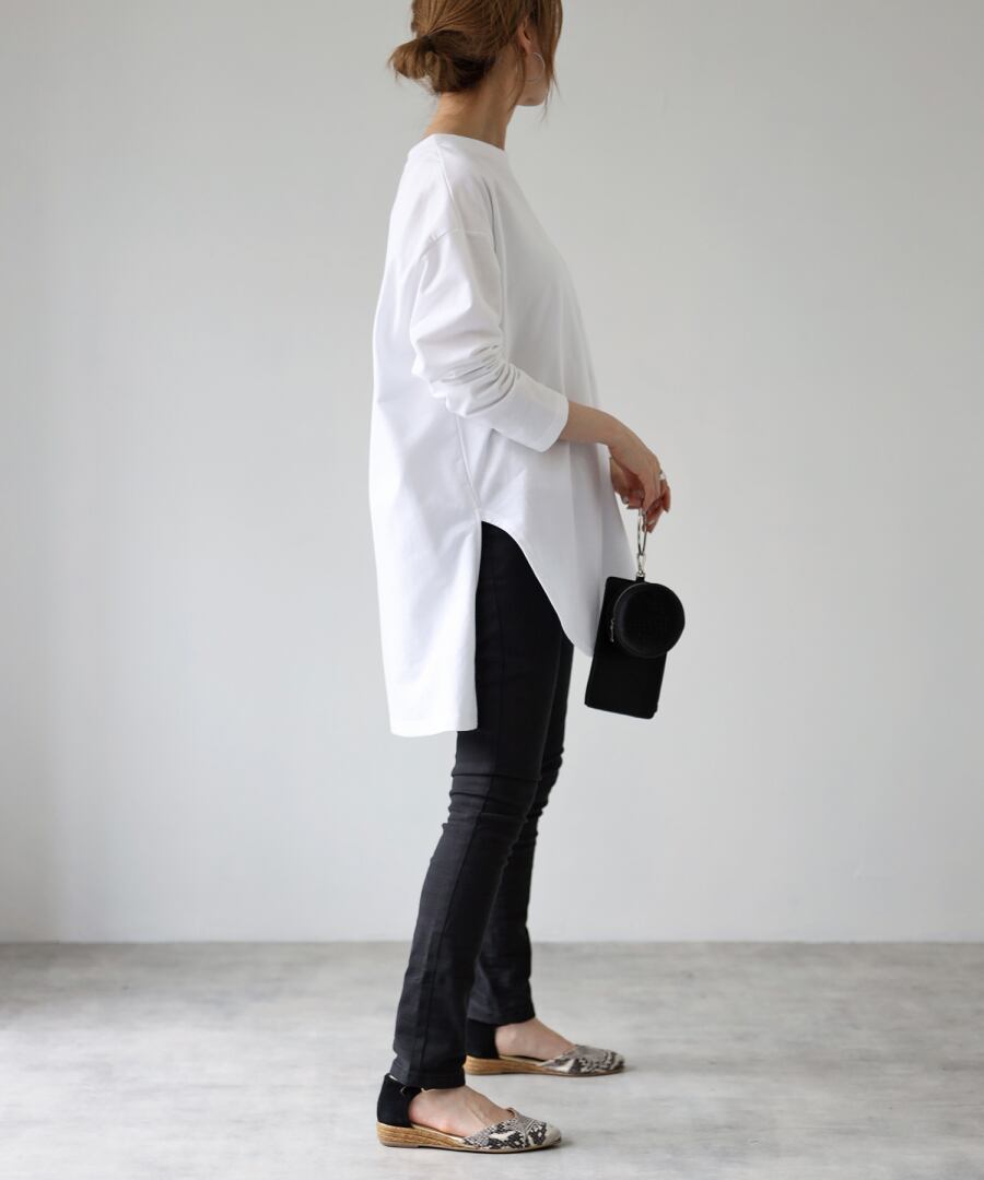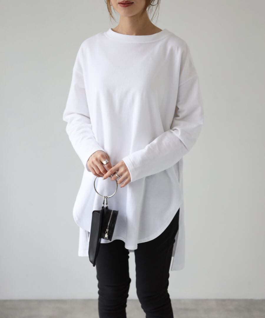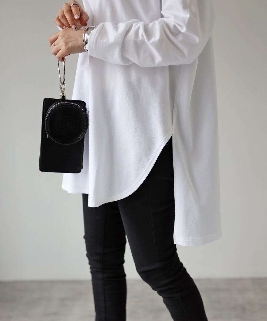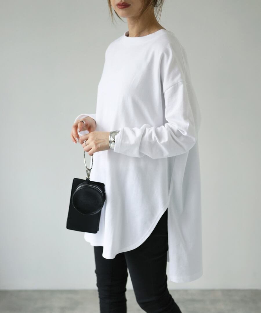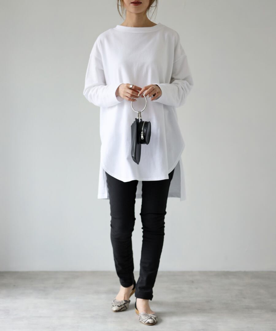 ヒップラインが隠れる丈感が嬉しいポイント。