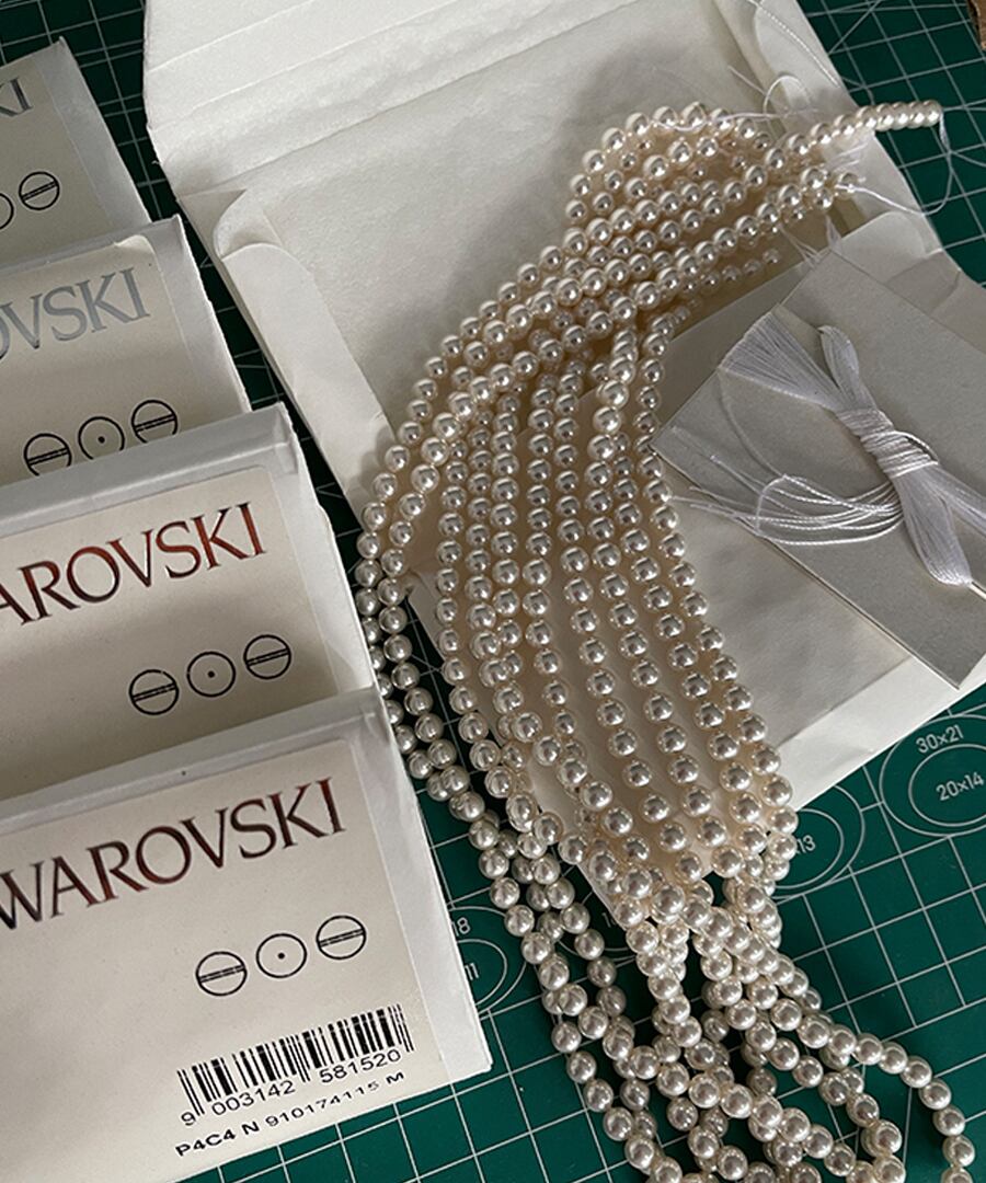 お洒落で人気なマンテルデザインの留め具にまでパールをあしらい上品な印象です。