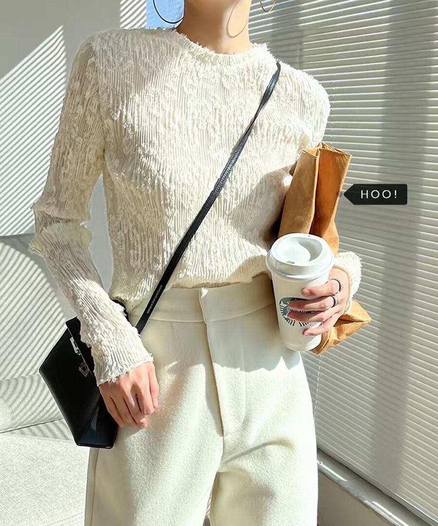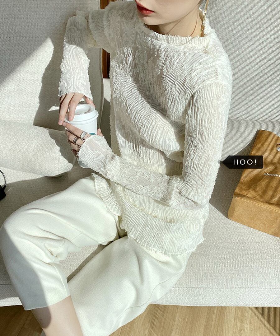 プリーツレースカットソー【t-10172】