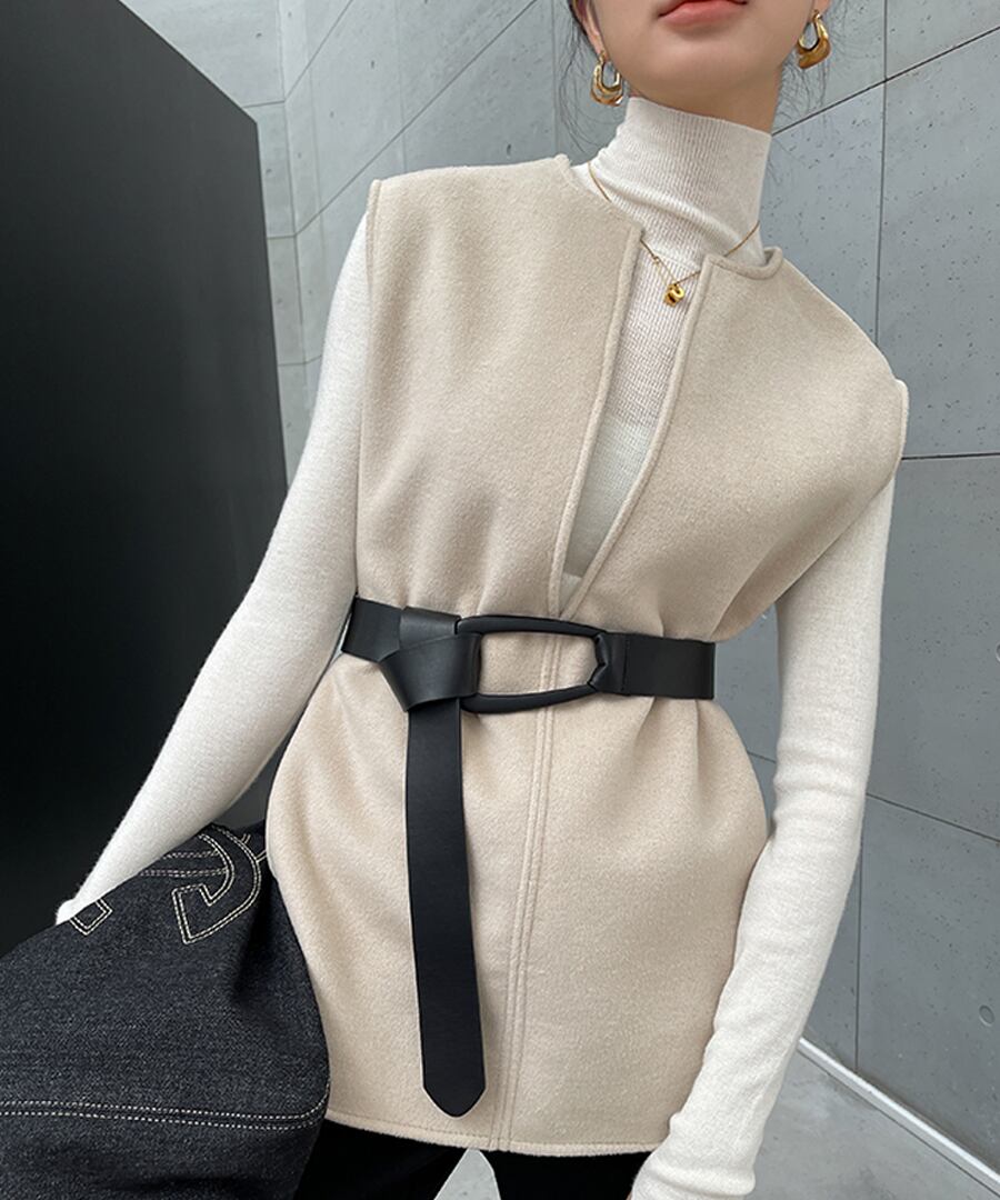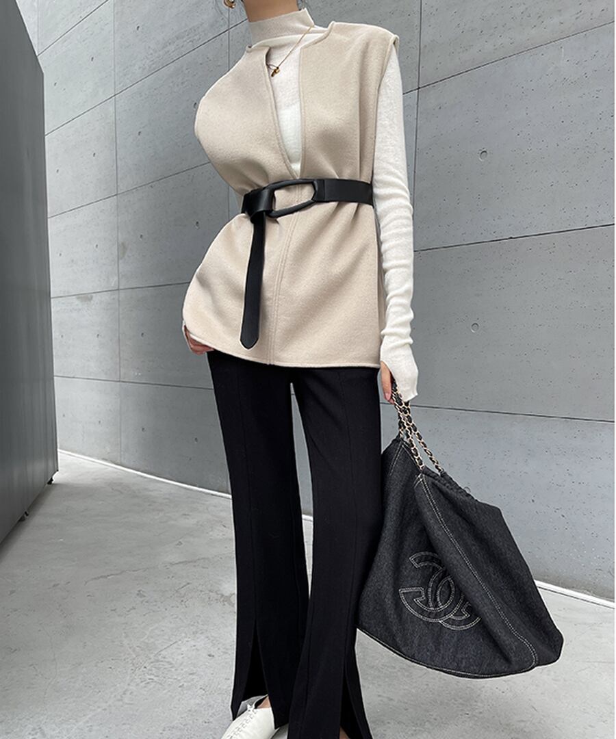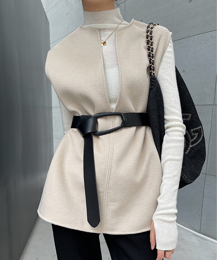 マットなレザーの質感がコーディネートにニュアンスをプラス。