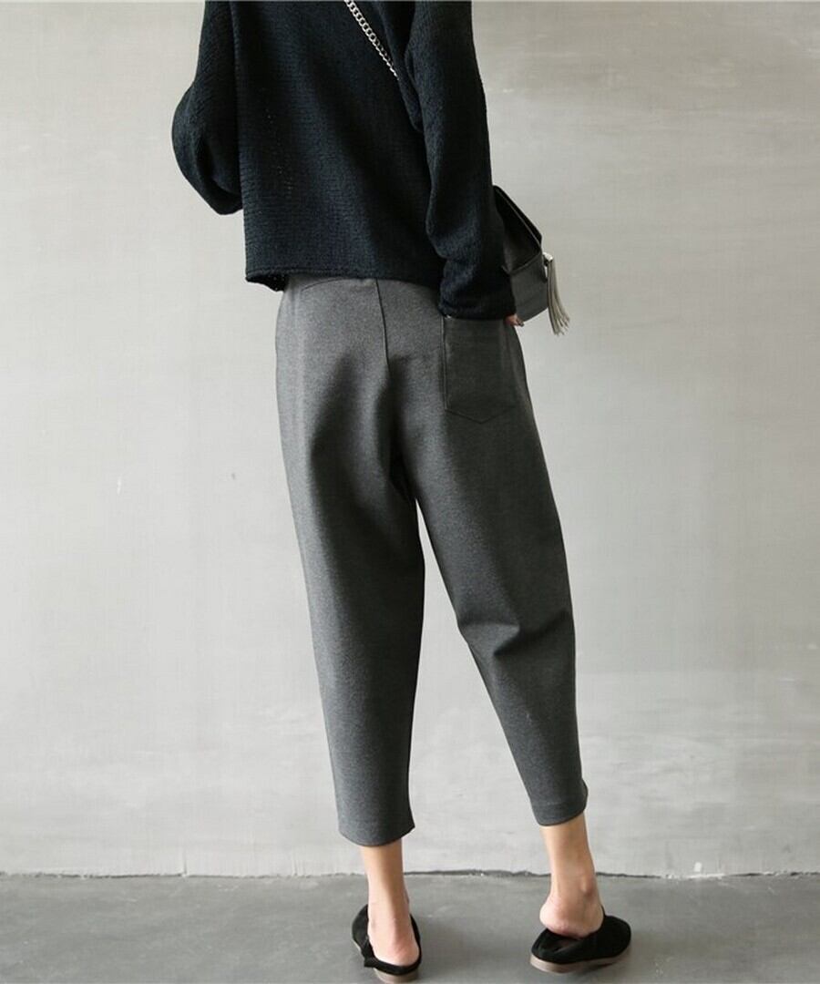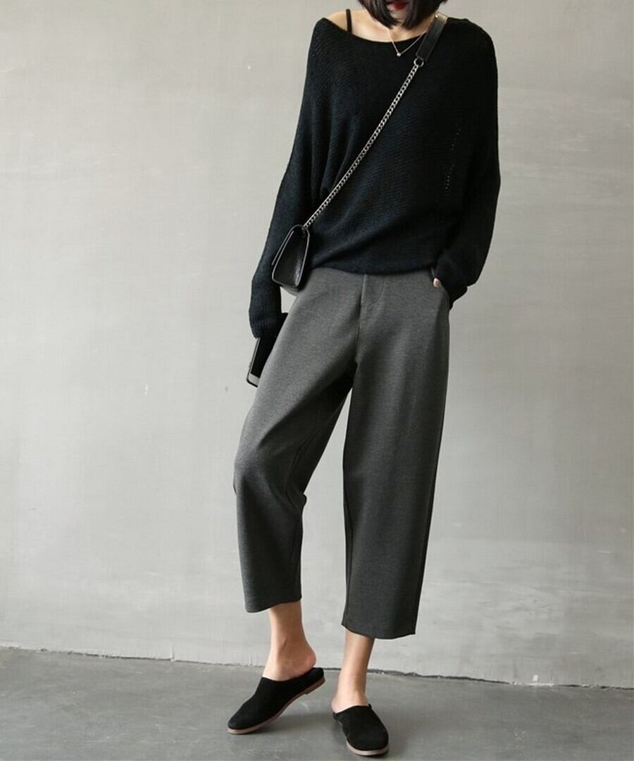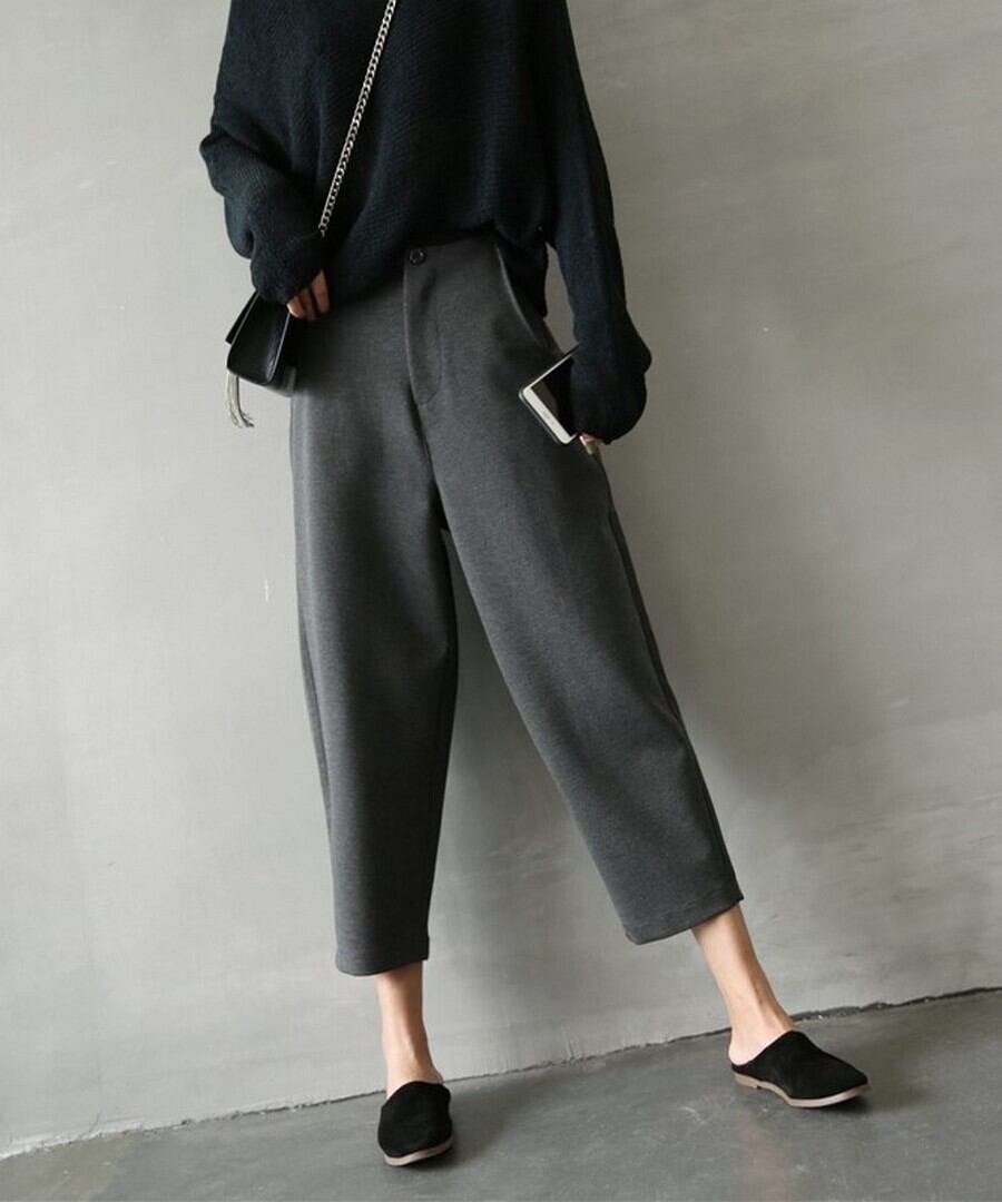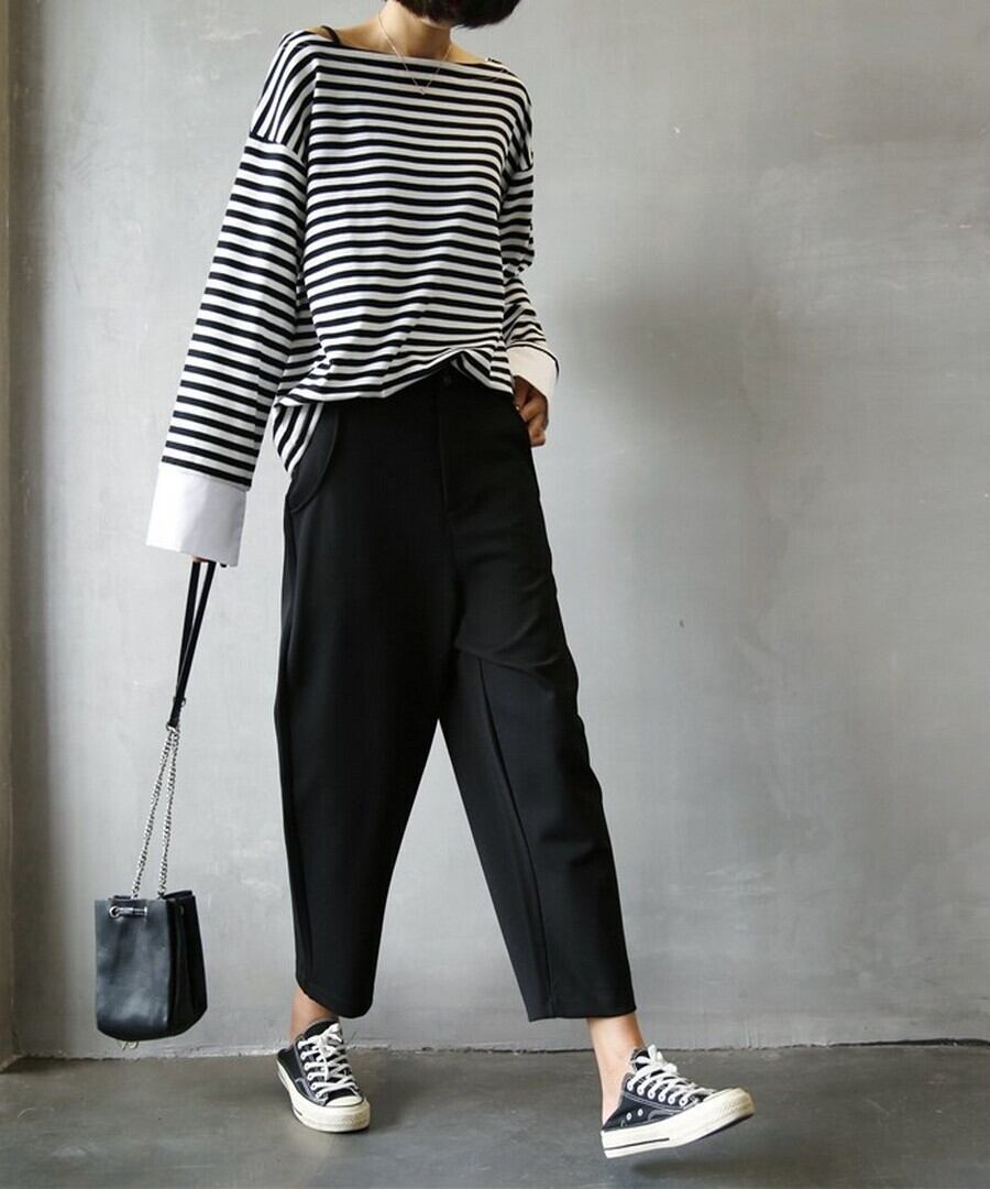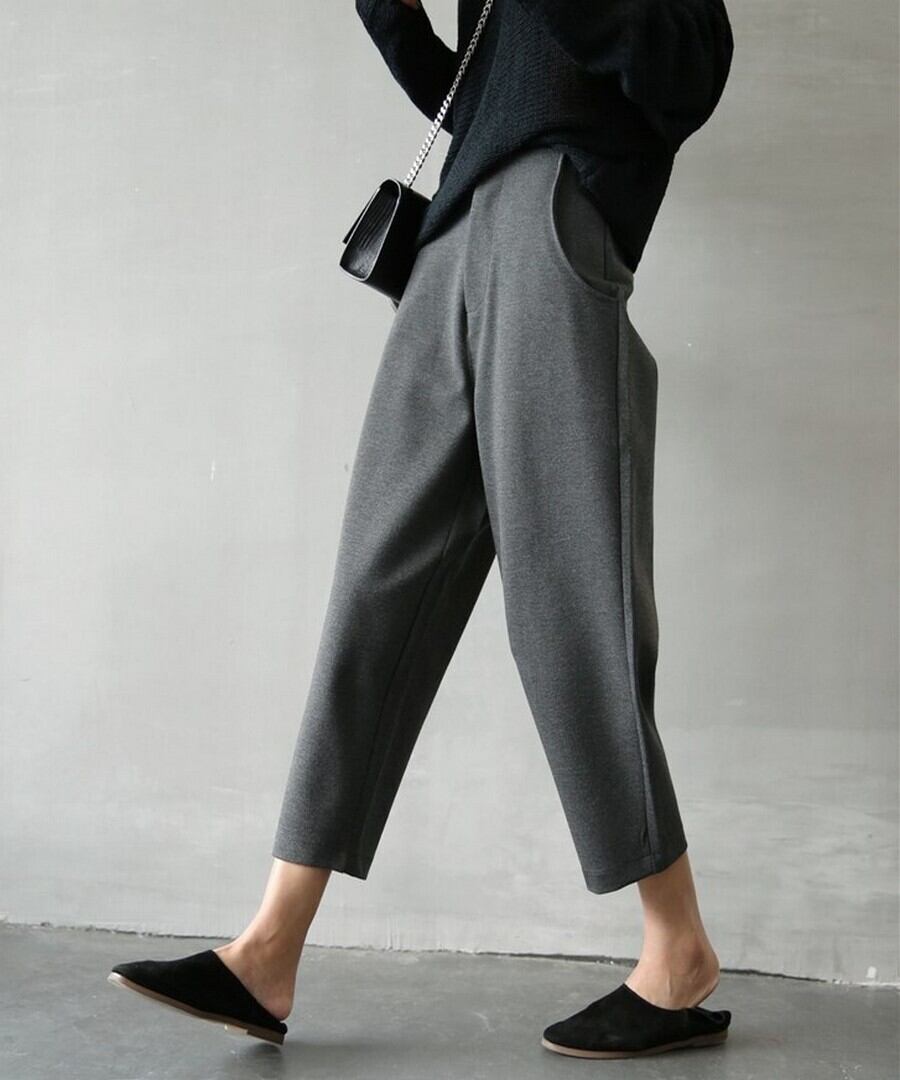 テーパード アンクル スラックス、ゆったりとしたクロップドパンツです。