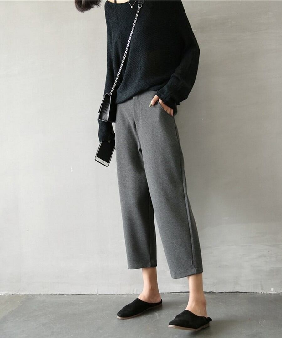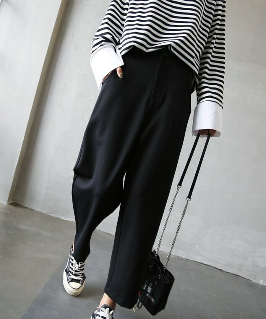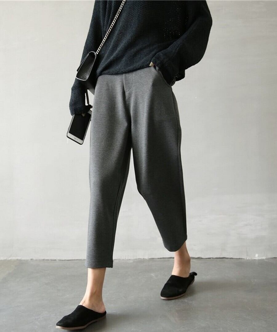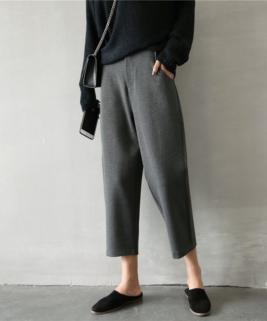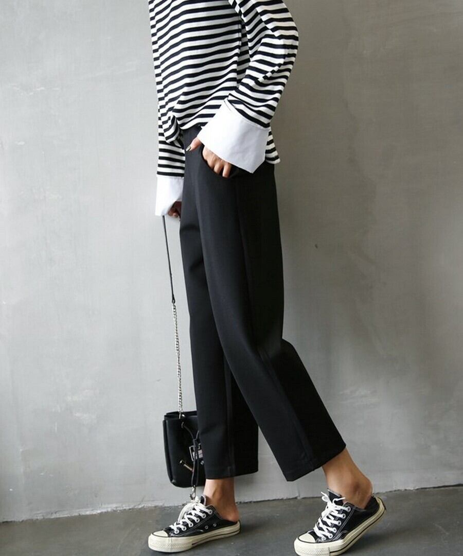 テーパード アンクル スラックス、ゆったりとしたクロップドパンツです。