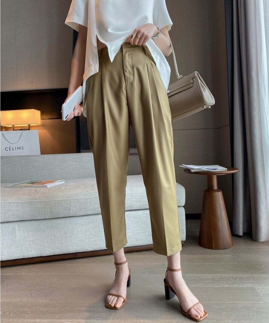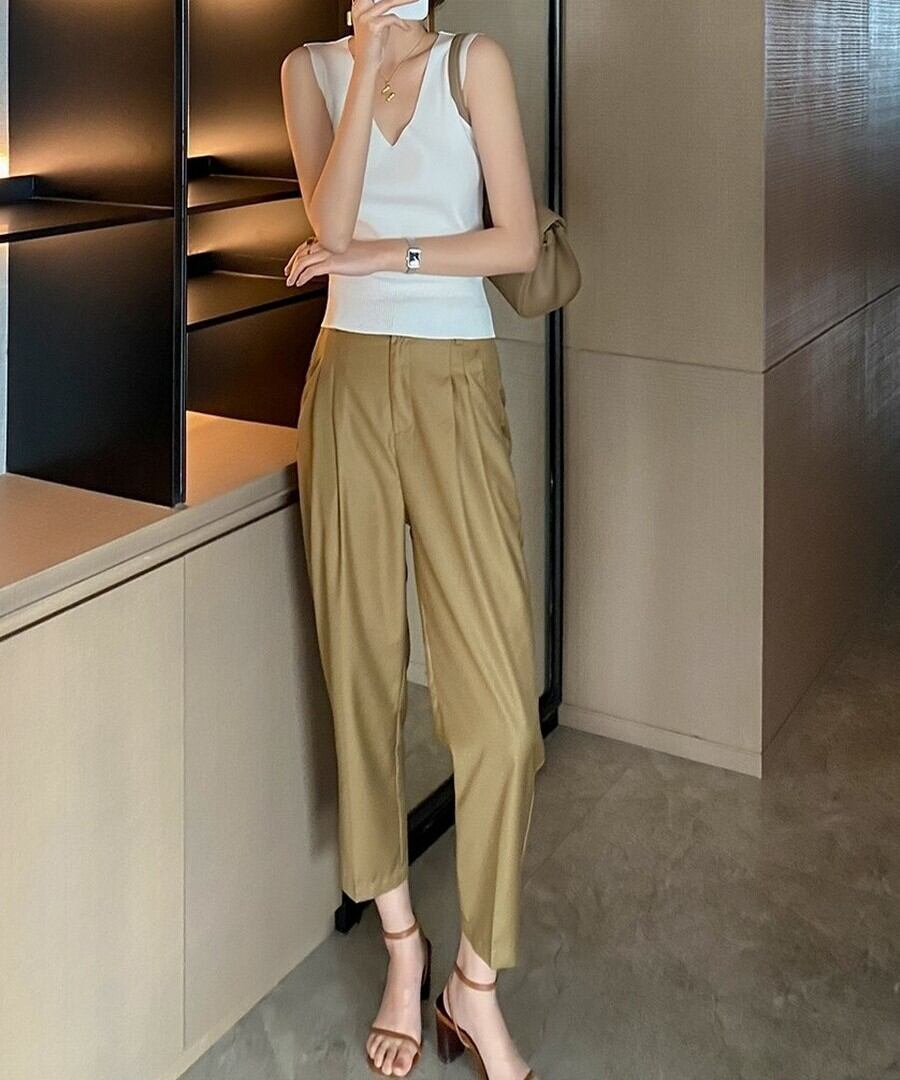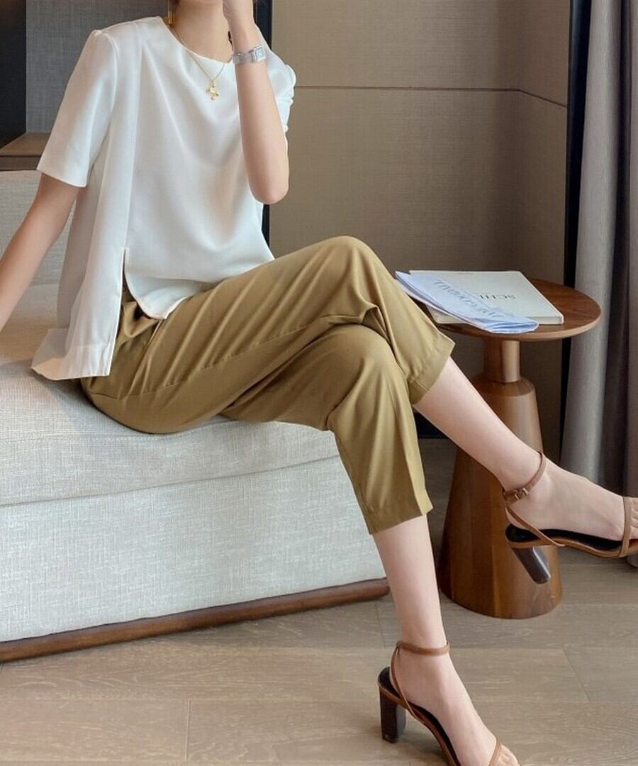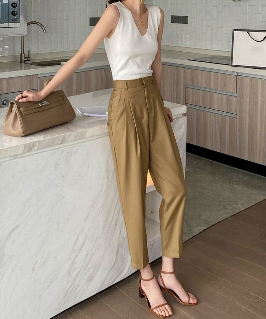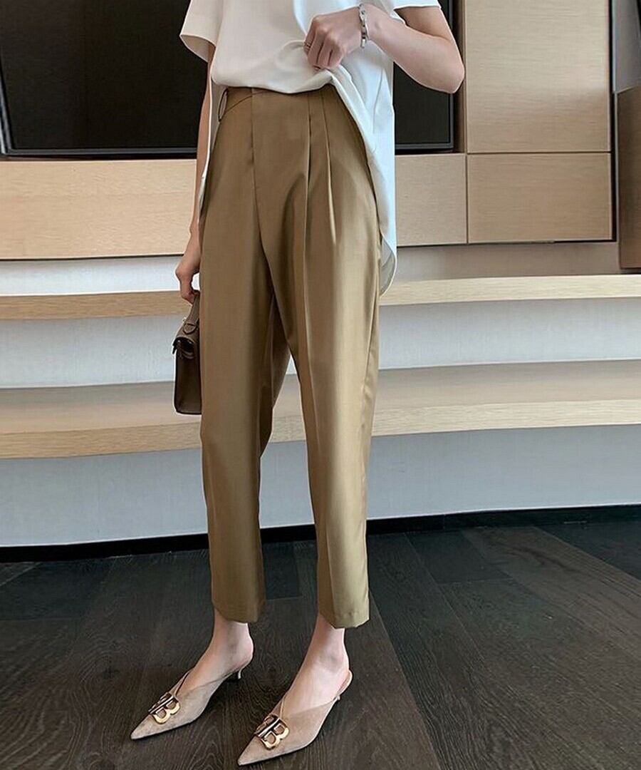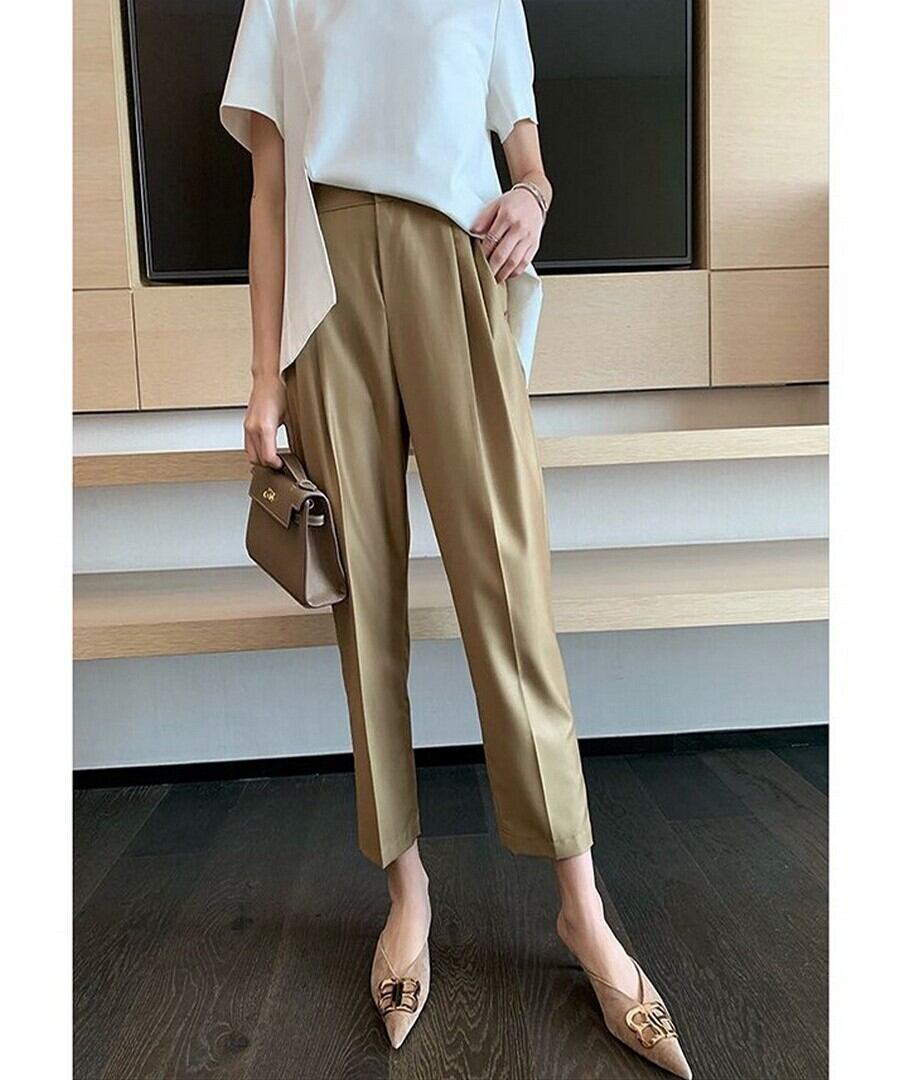 ハイウエスト9分丈カジュアルパンツ【p-20063】