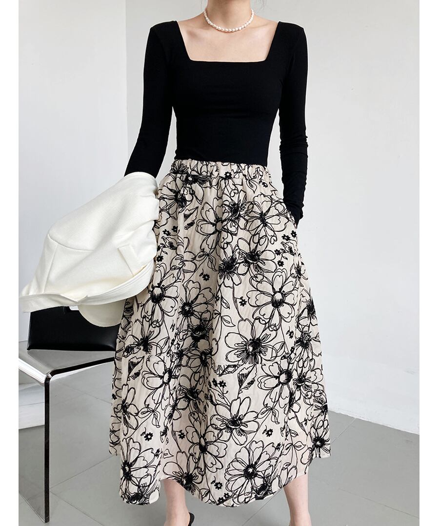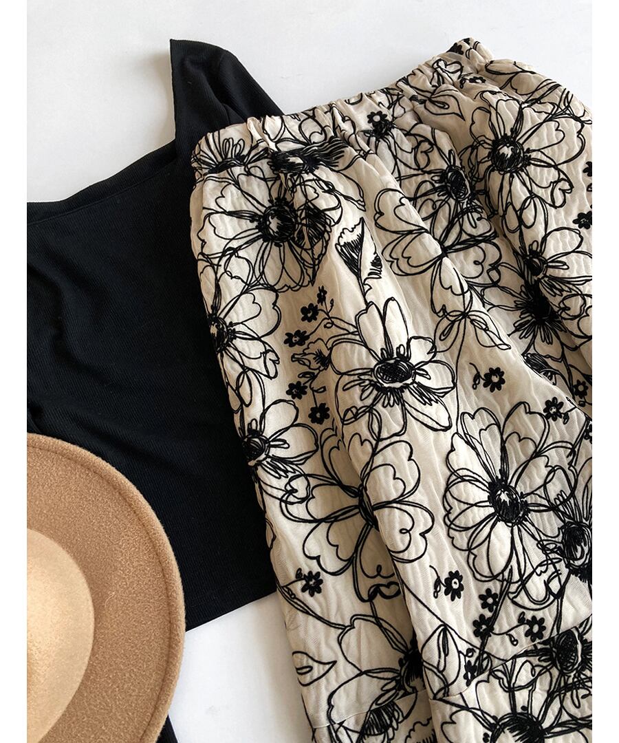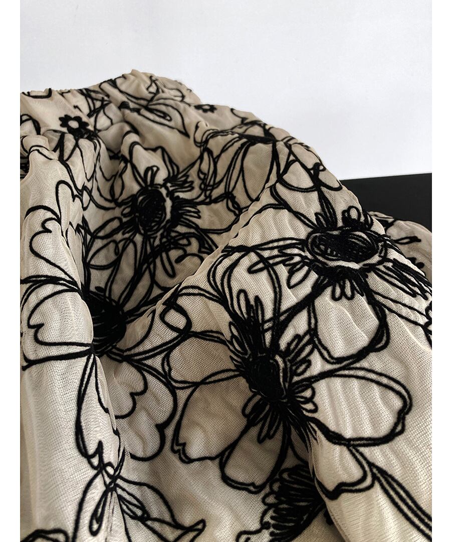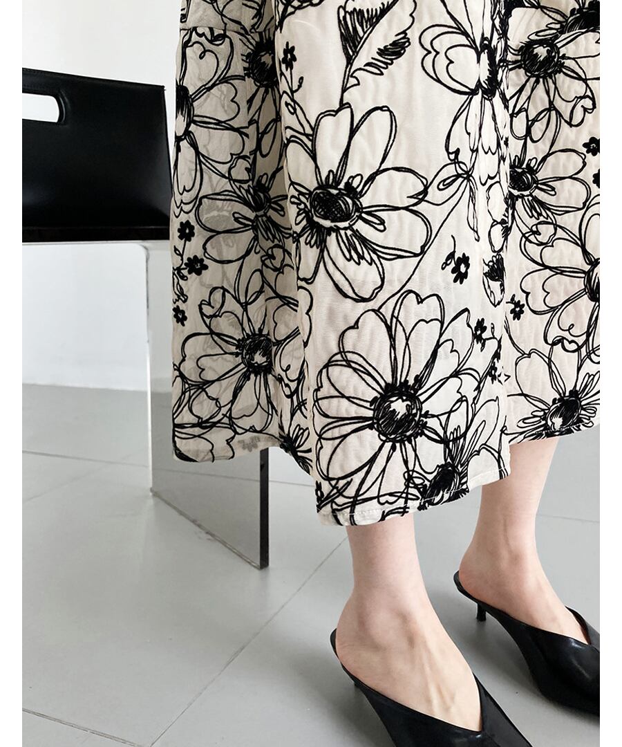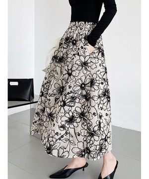 フラワー刺しゅうが素敵なAラインのフレアスカート