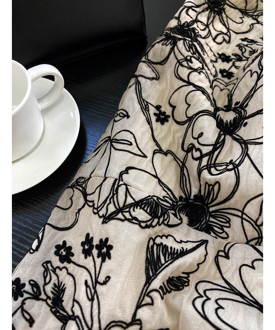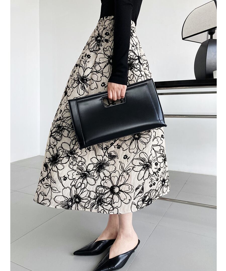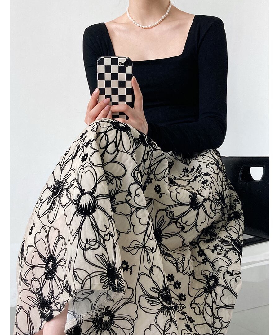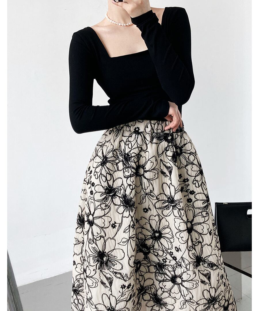 フラワー刺しゅうが素敵なAラインのフレアスカート