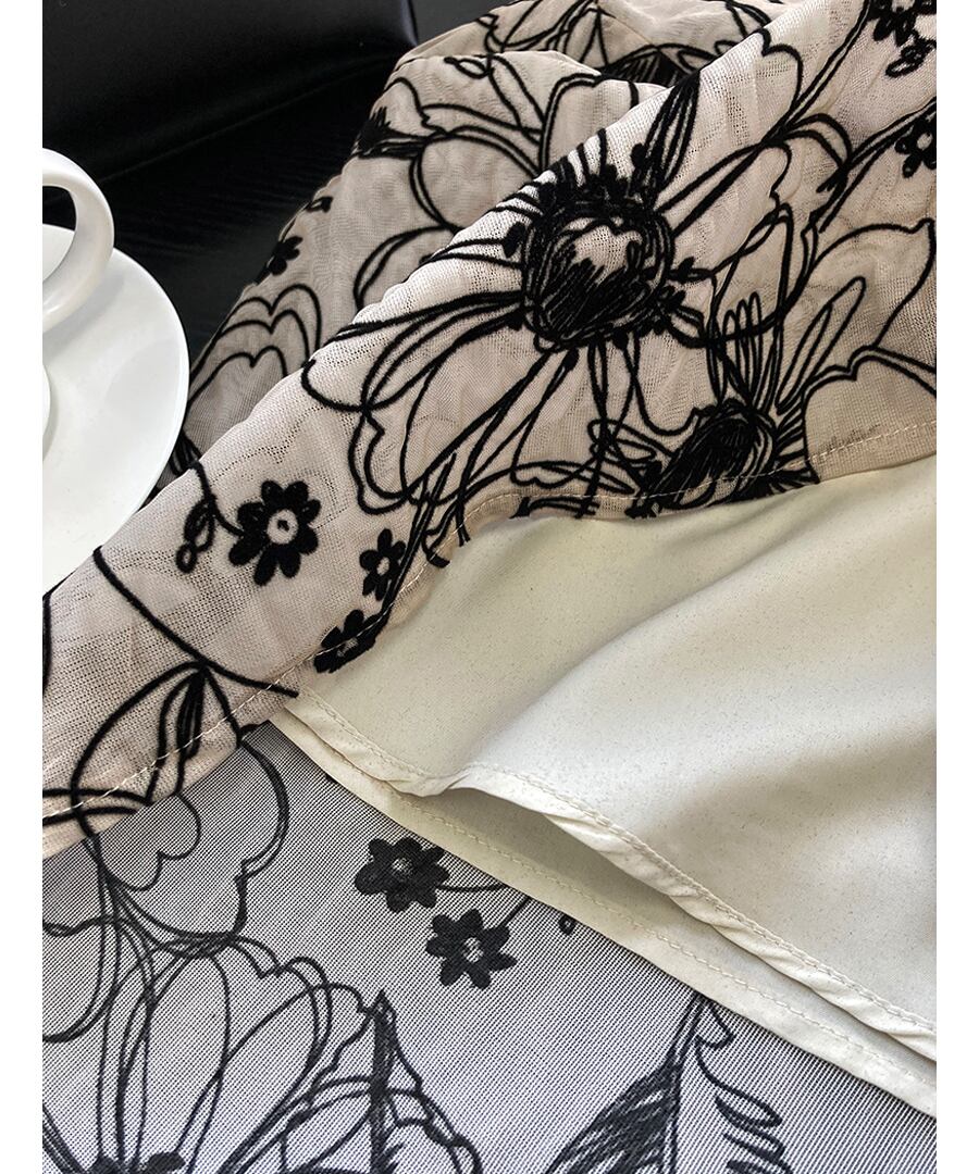 シックな色合いの花模様が大人っぽさを作る一枚